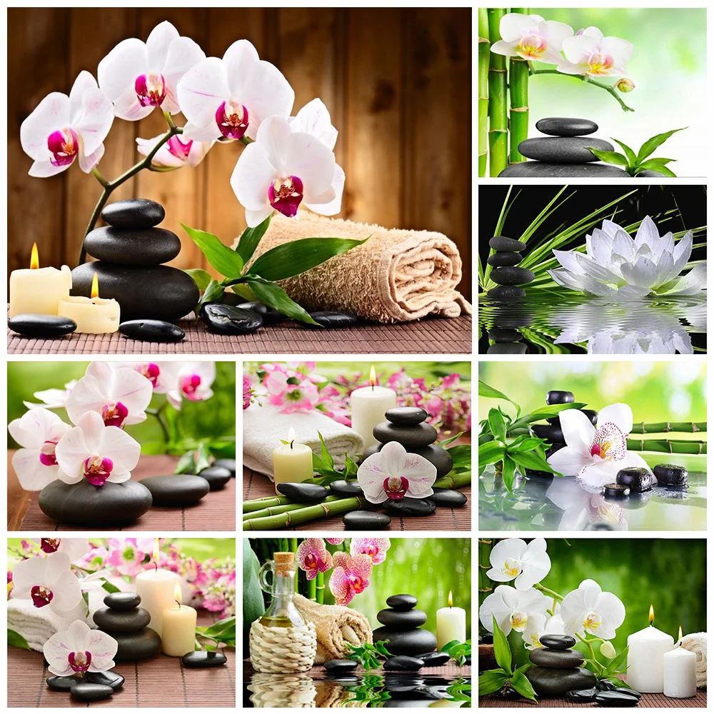 MEIVN DIY алмазная живопись, Орхидея, камень, полная квадратная Алмазная вышивка в стиле Дзен стразы, картины, набор для рукоделия