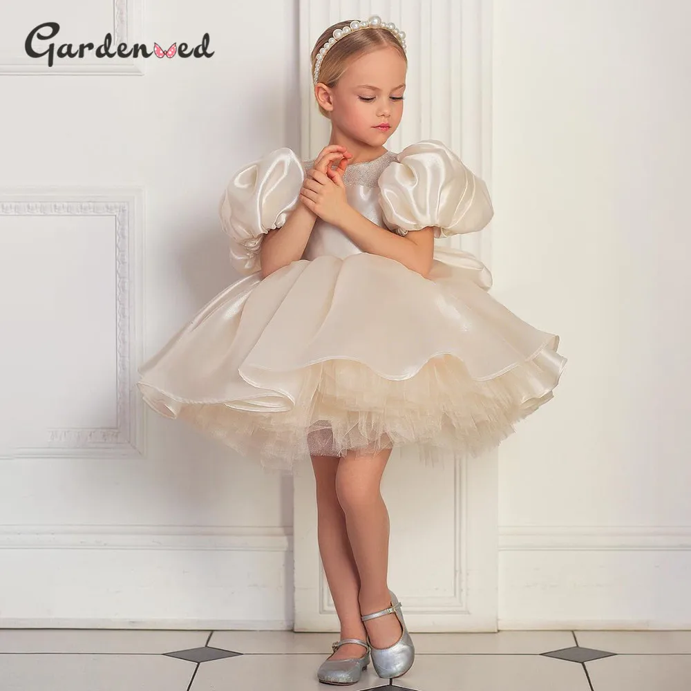 Пышное Тюлевое многослойное платье с цветами для девочек свадебное платье для девочек цвета слоновой кости бальное платье Элегантное платье принцессы 2021 Причастие