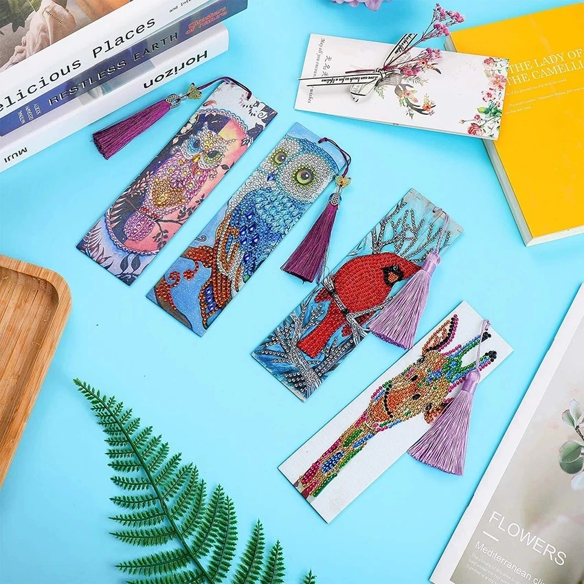 4 набора 5D Сделай Сам алмаз закладки с живописью Дерево животных кожаная кисточка Закладка в китайском стиле с инструменты для вышивки картин со стразами наборами