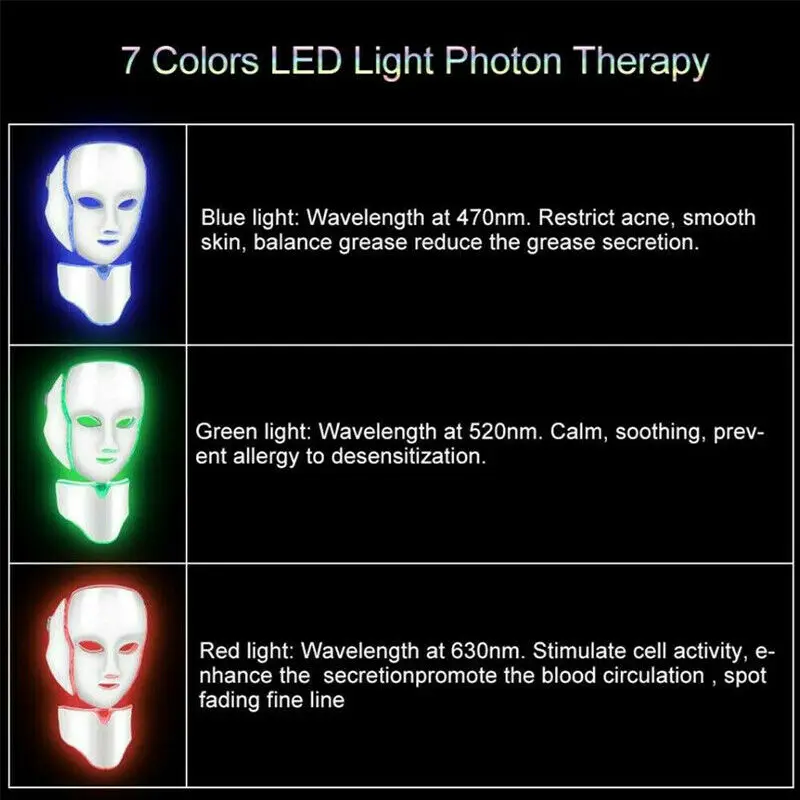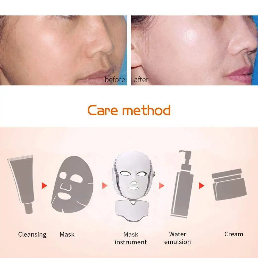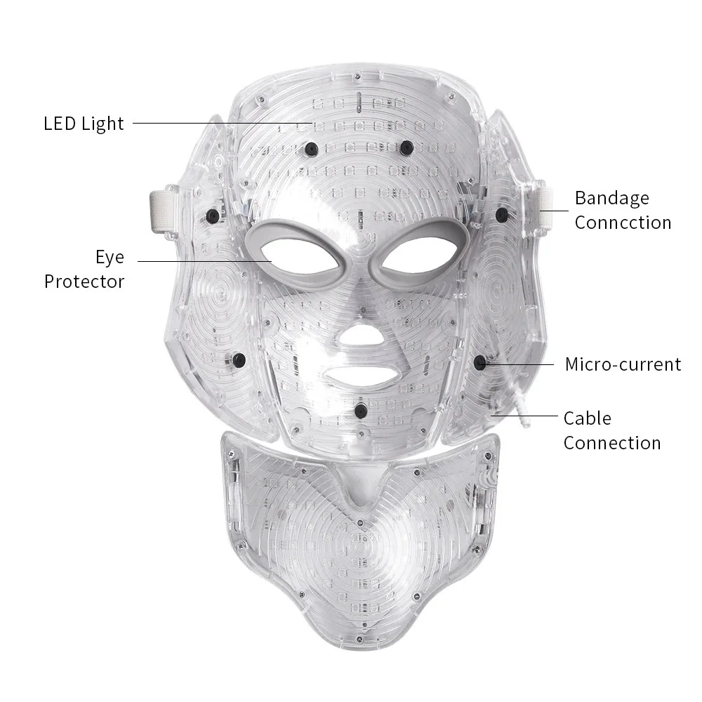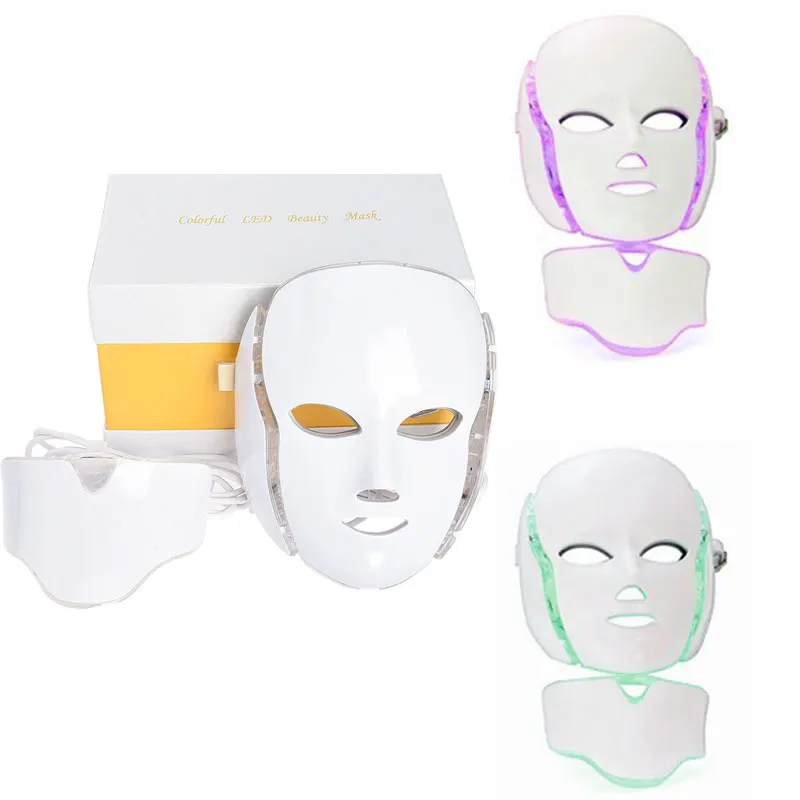 7 цветов светильник светодиодный маска для лица терапия красота машина с шеи омоложение кожи уход за лицом спа анти отбеливание акне инструмент