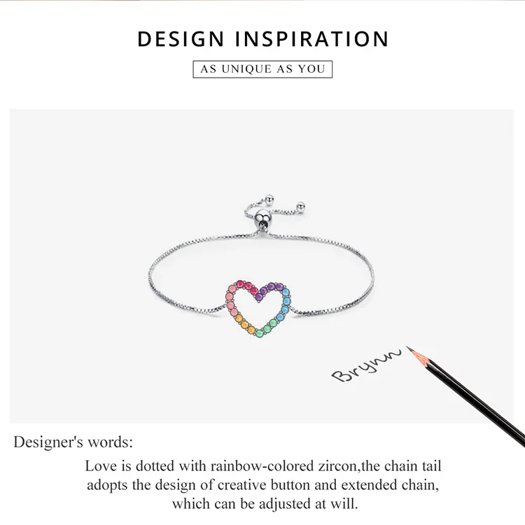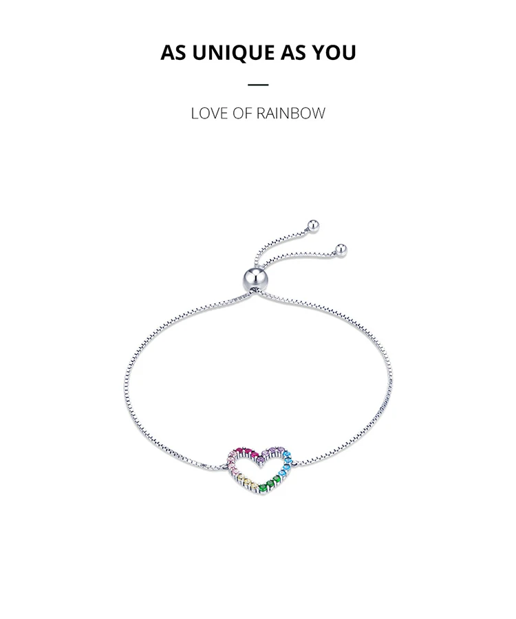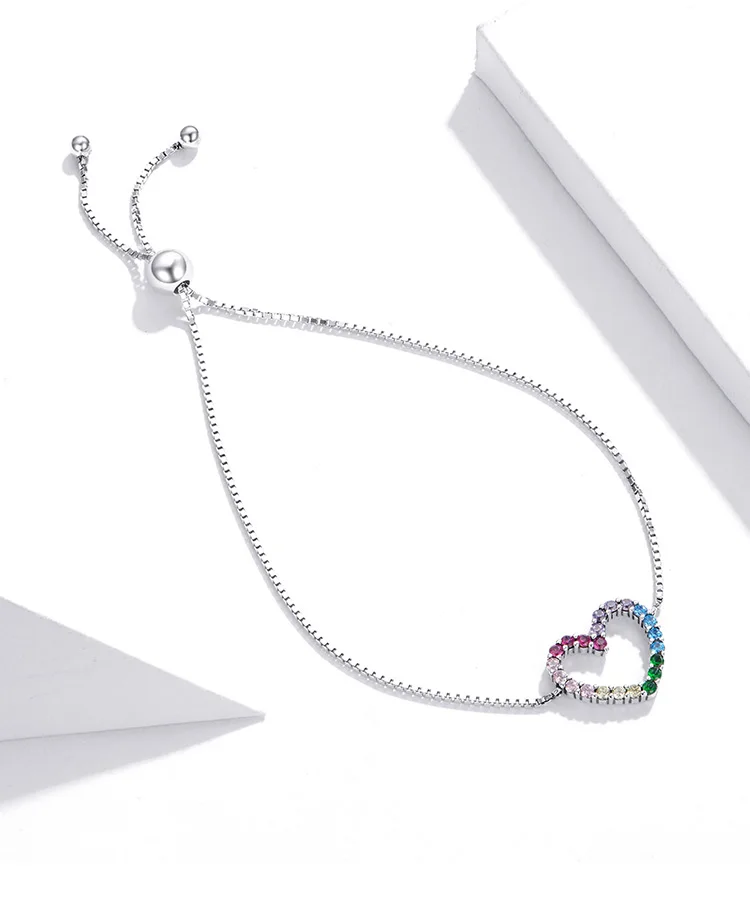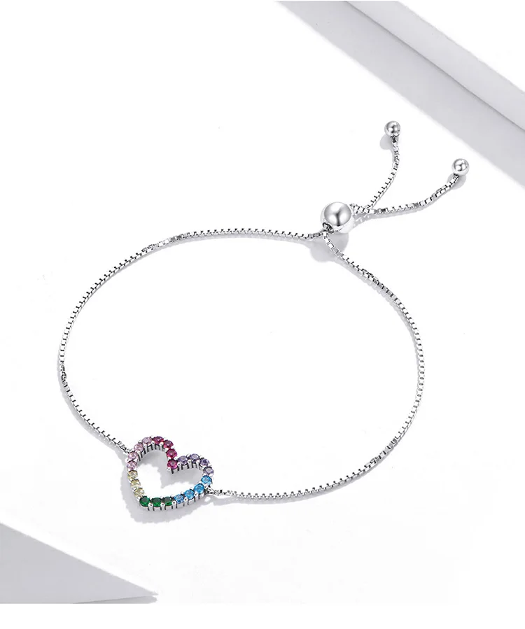 Браслет-цепочка женский из серебра 925 пробы, с разноцветными сердечками
