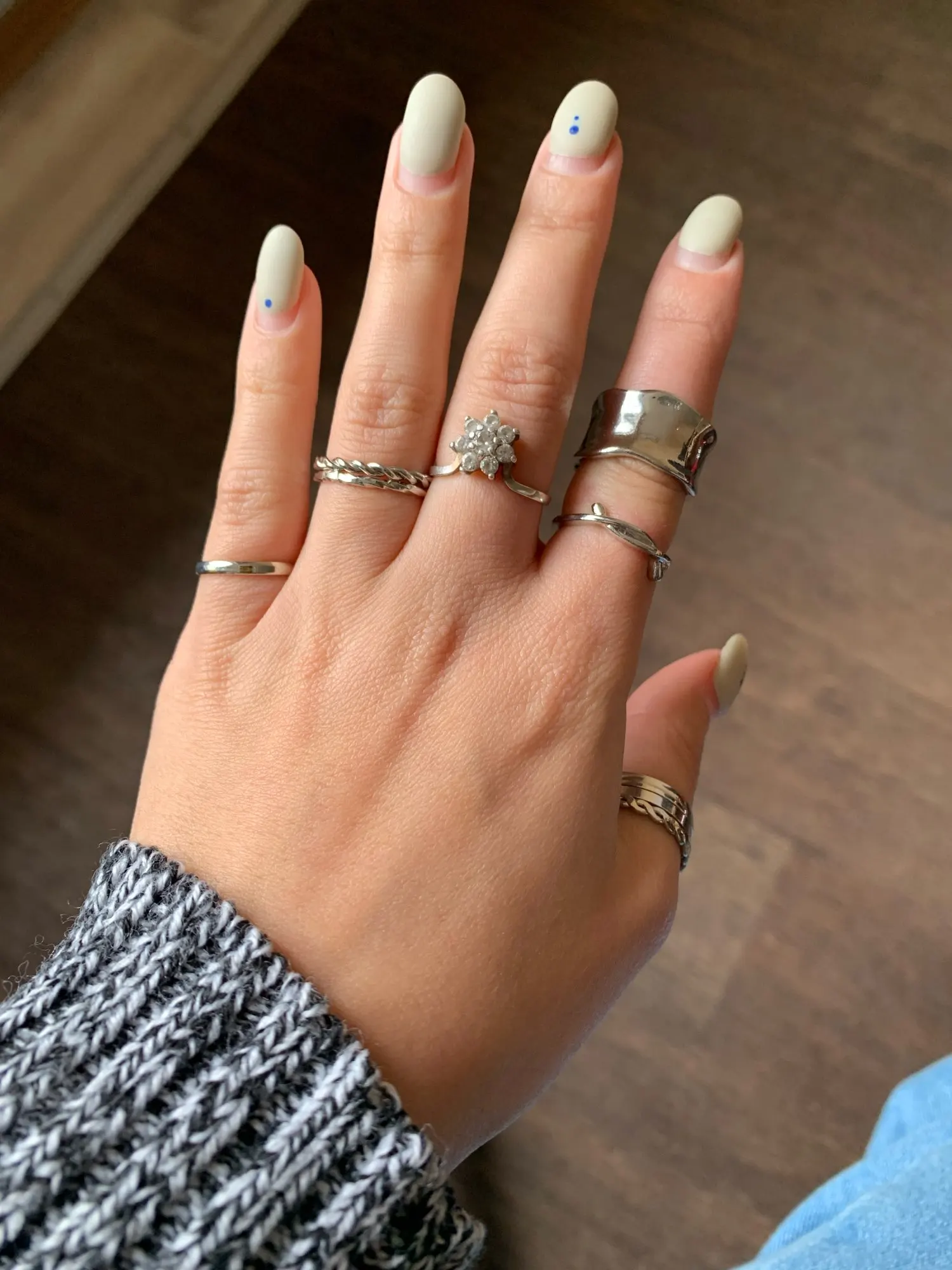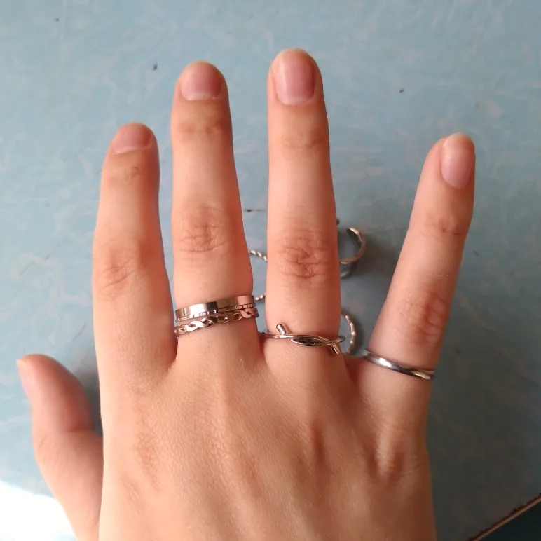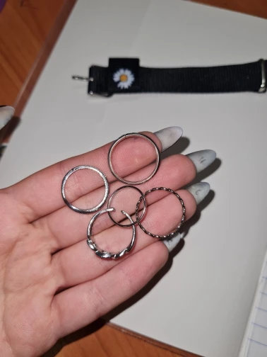 товар соответствует описанию и фотографии продавец отправил заказ на следующий день пришло в комплекте с другими товарами всего за 2 недели колечки все разного размера, только одно регулируется но все очень красивые, мило смотрятся с продавцом не общалась