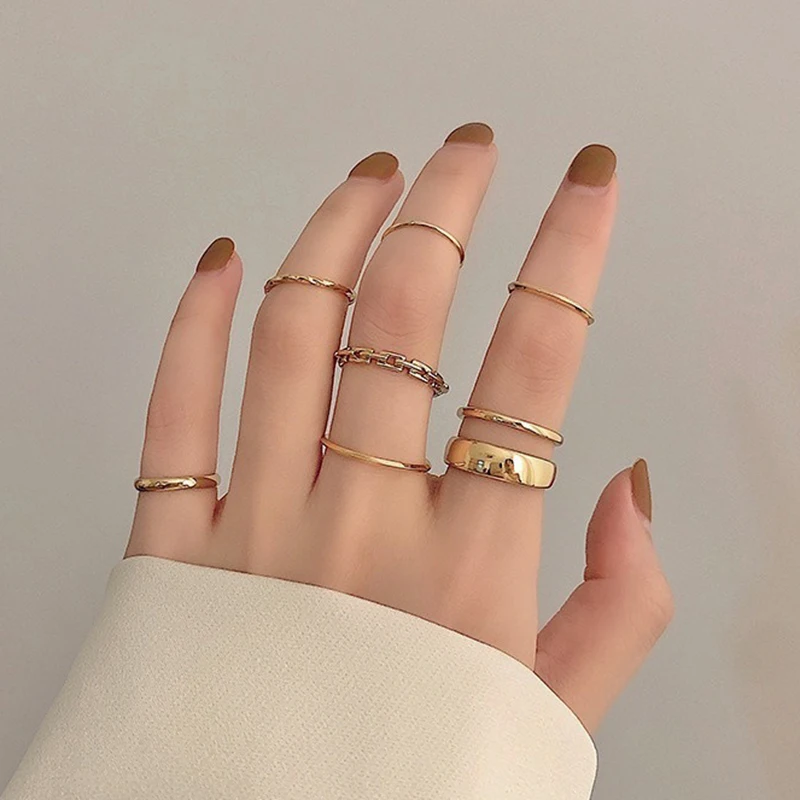 Наборы женских геометрических колец, золотистыесеребристые, в стиле панк