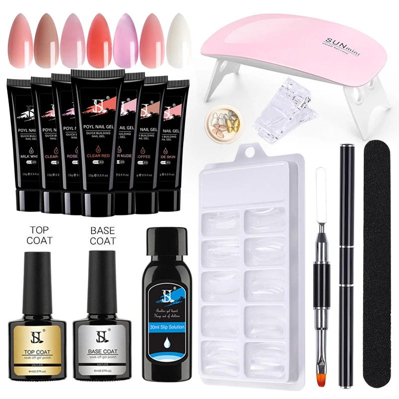 Поли набор гелей для ногтей все для маникюра УФ-гель для ногтей для наращивания комплект скольжения раствор Акрил Гель для наращивания ногтей, для маникюра, базовое и топовое покрытие