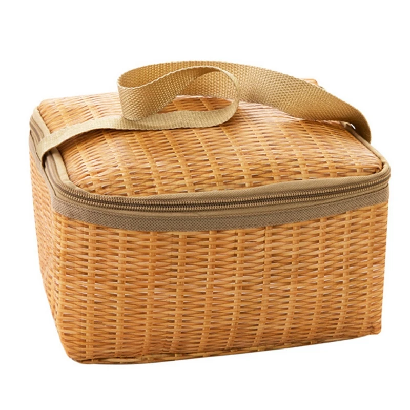 Портативная утолщенная изолированная сумка для ланча из ротанга, бо...