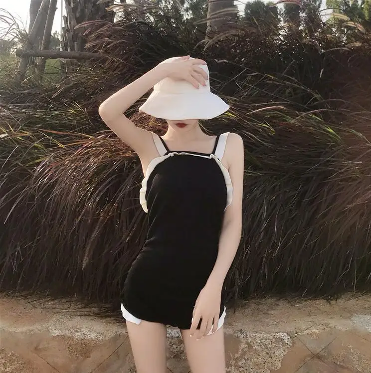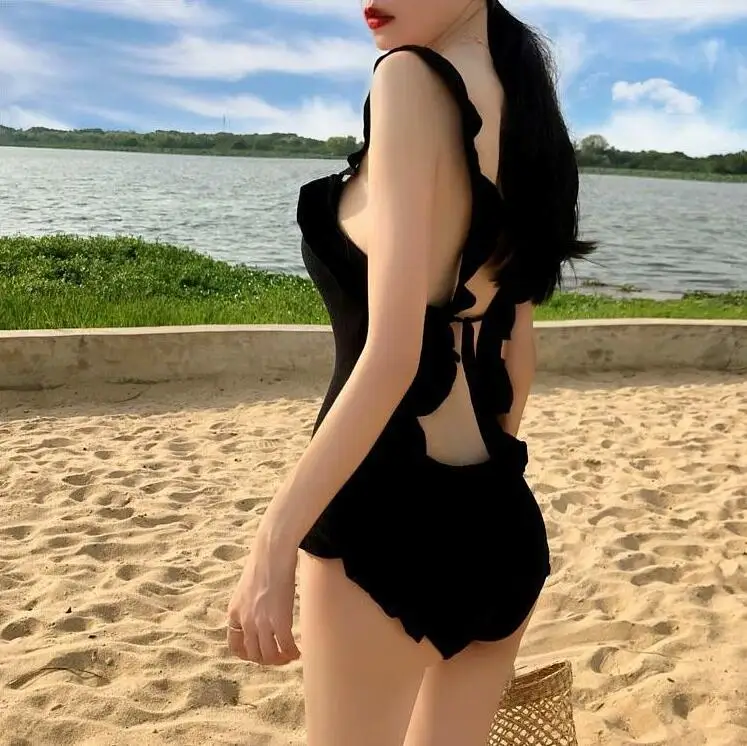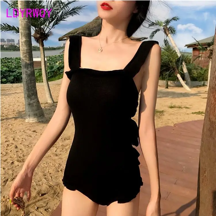 Купальник-бикини LDYRWQY, однотонный, закрывающий живот, сплошной, с рюшами, на шее, сзади, 2021