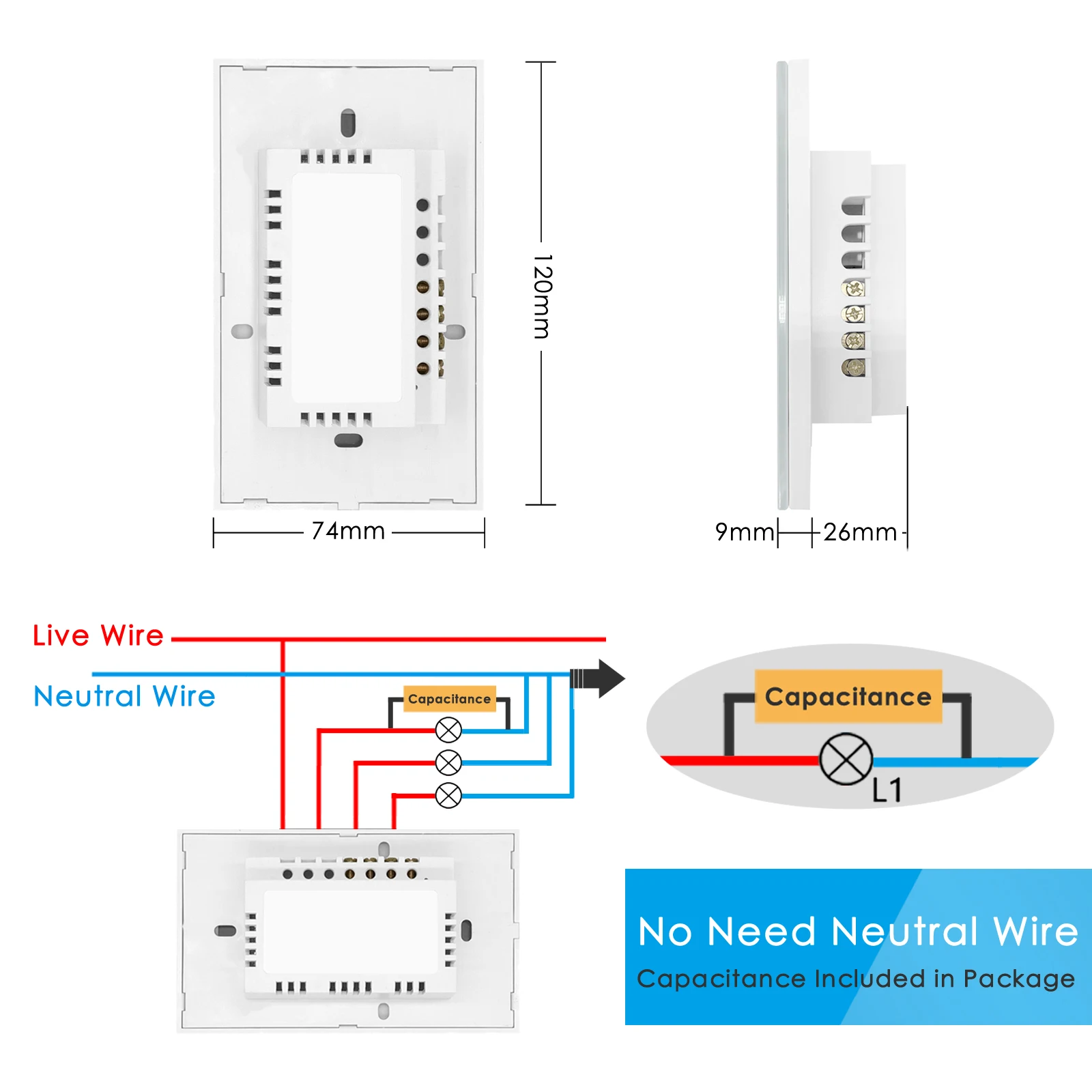 Умная Wi-Fi настенный светильник Переключатель No нейтральный провод на возраст 1, 2, 3, Tuya Smart Life App, 433 RF 220V 110 в США, Поддержка Alexa Google Home