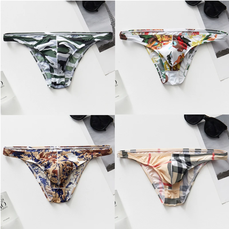 4 шт./лот, сексуальные мужские трусы-бикини, нижнее белье, мужские трусы с принтом, мужские трусы