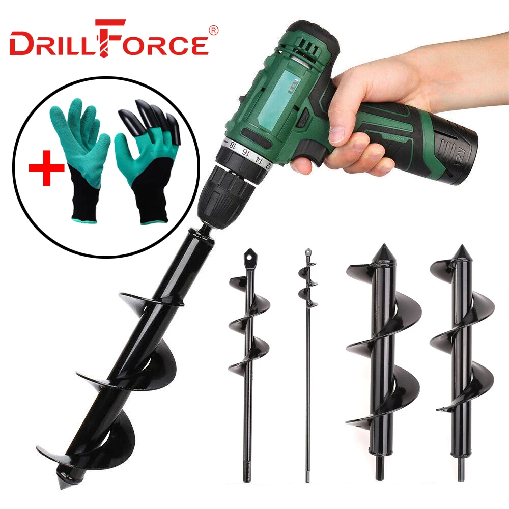 Drillforce сад ящик для комнатных растений, спиральное сверло буровое долото + перчатки цветок лампы шестигранный вал двор постельные принадлежности посадка пост отверстие экскаватор инструменты