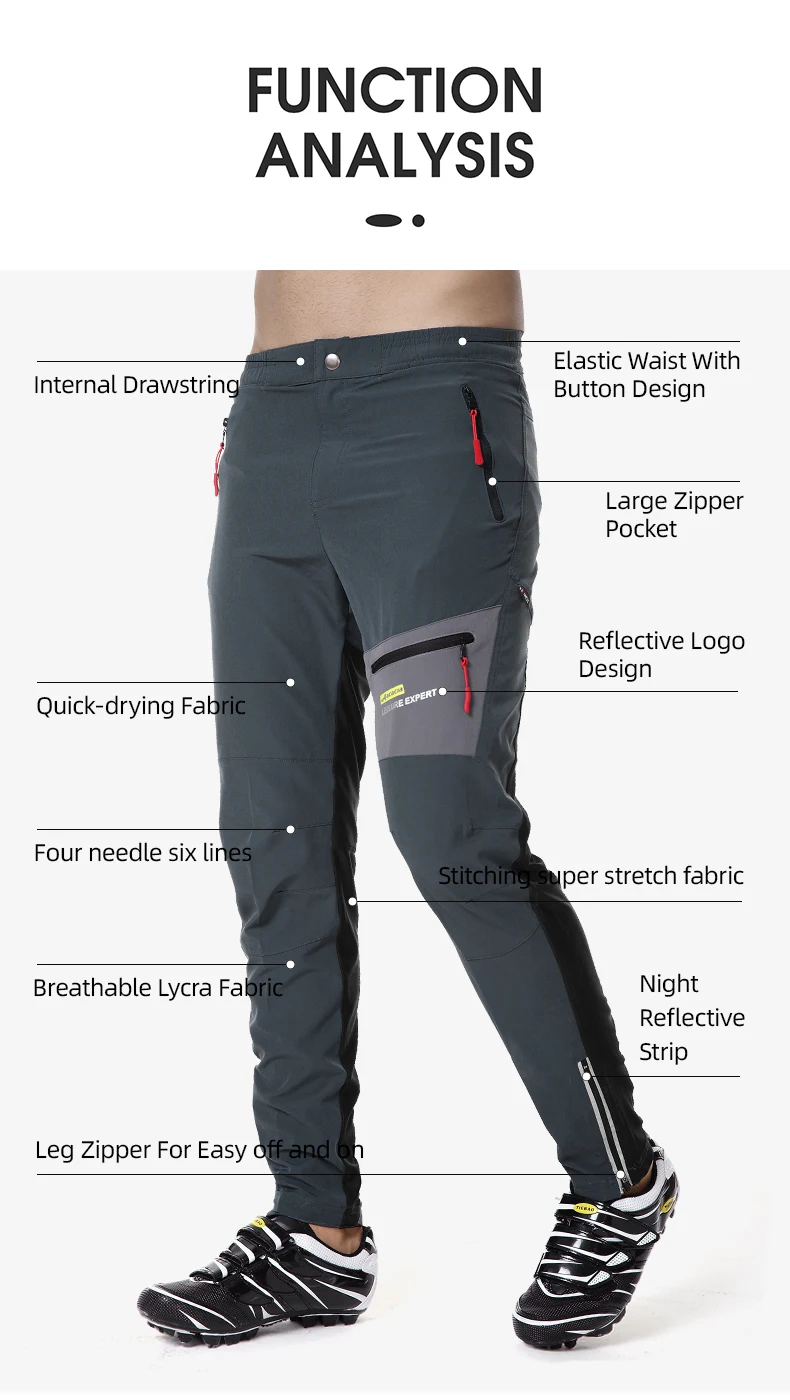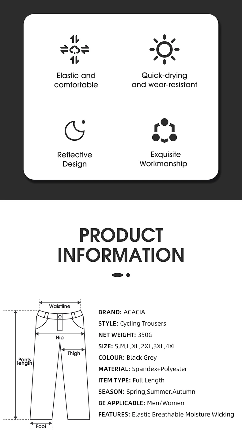 Черный серый дышащие мягкие велосипедный Безопасность Светоотражающие штаны с эластичной резинкой на талии Демисезонный Мужчины Велоспорт длинные брюки для девочек