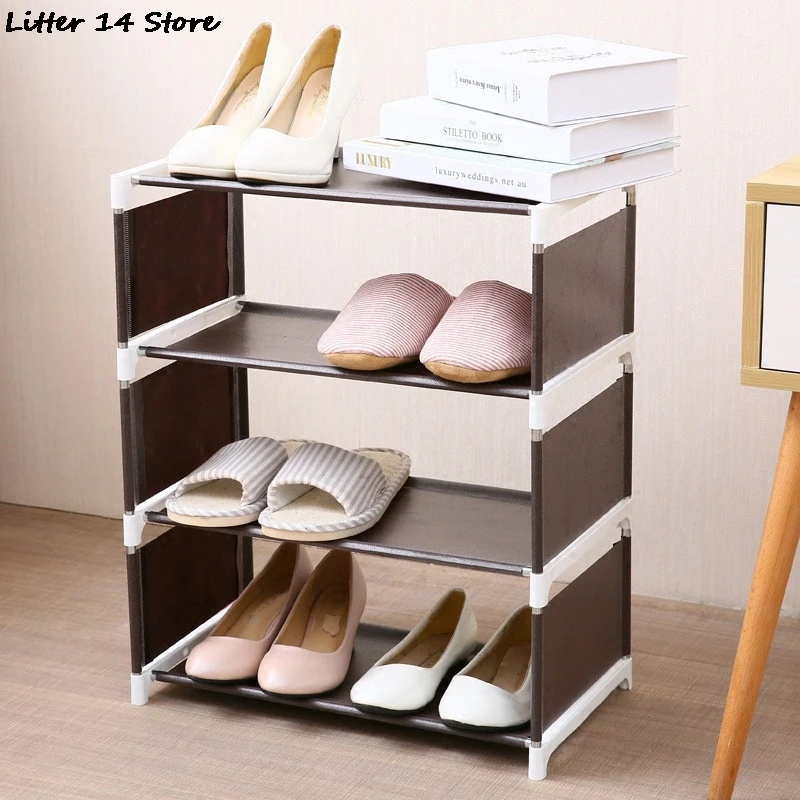 Простая Нетканая стойка для обуви, 4-ярусная сборная стойка для обу...