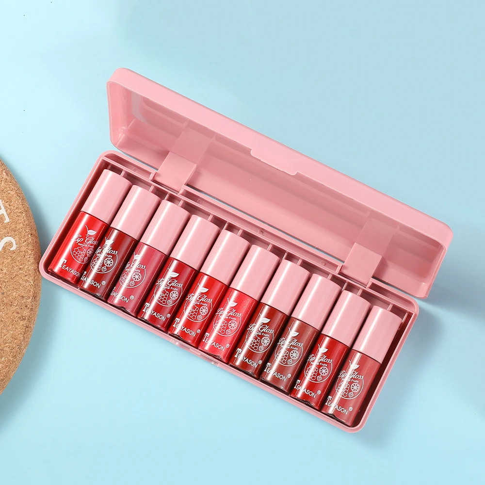 Блеск для губ, 10 шт.кор., водостойкий, естественный, увлажняющий, легко наносится, стойкий макияж, набор блесков для губ