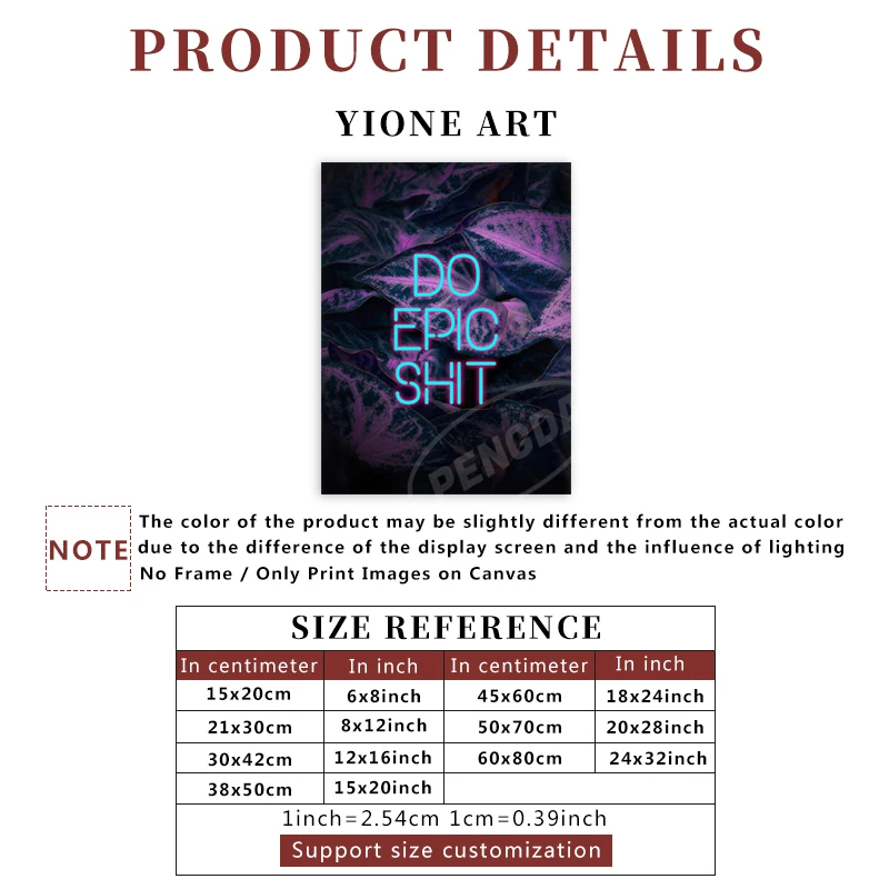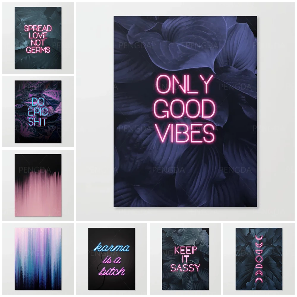 Картина на холсте, Настенная картина с буквами, HD неоновая печать, фотообои в сборе, Современная Модульная рамка для гостиной