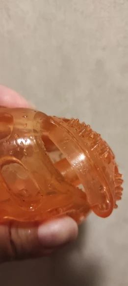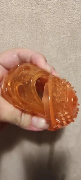 Мячик собаке понравился. Сначала даже не хотела приносить, сама играла. Пищалка вставлена глубоко так что клыками не продаваться внутрь.
