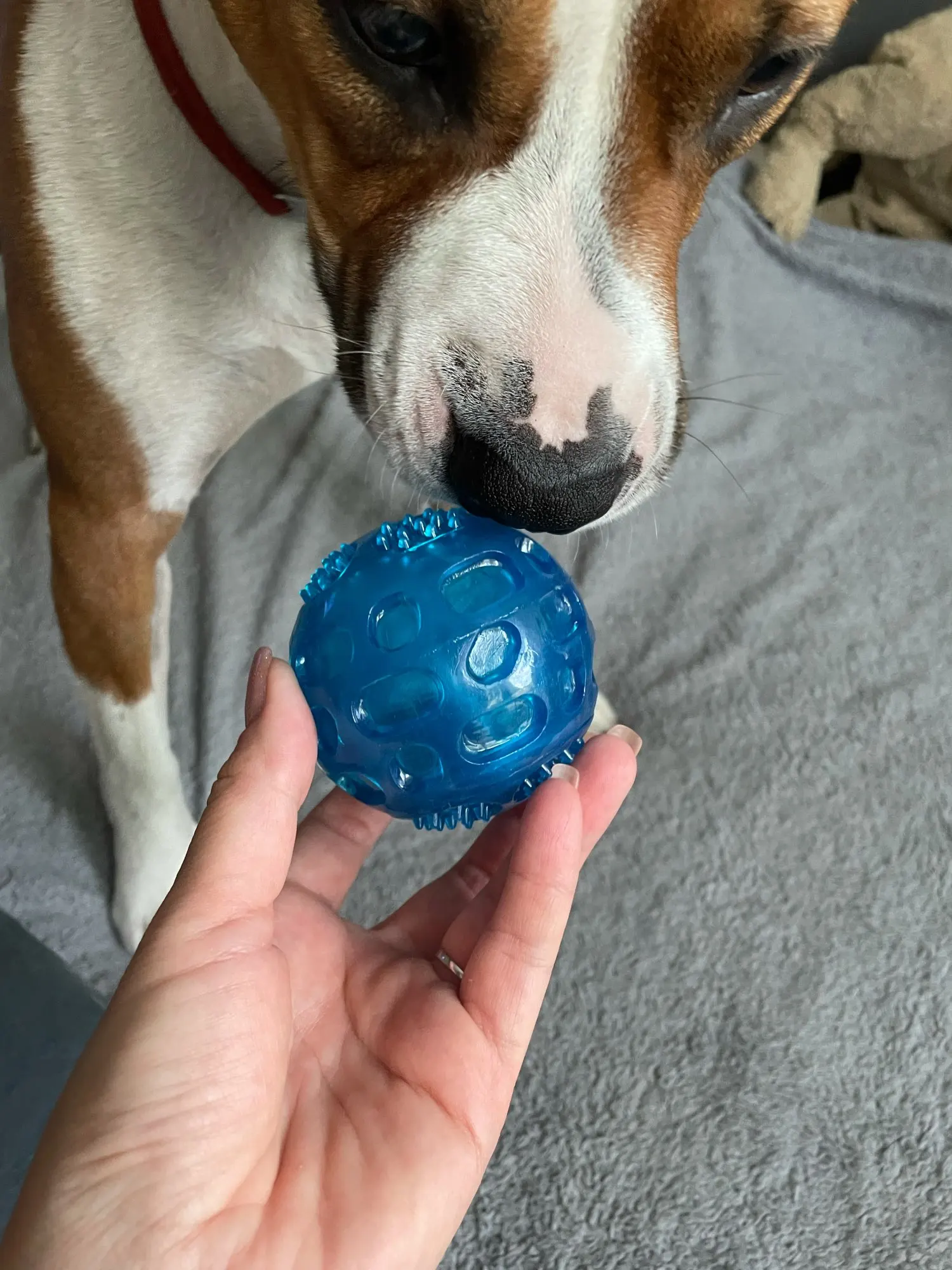 Мячик супер, закажу ещё, моим двум собакам очень понравился