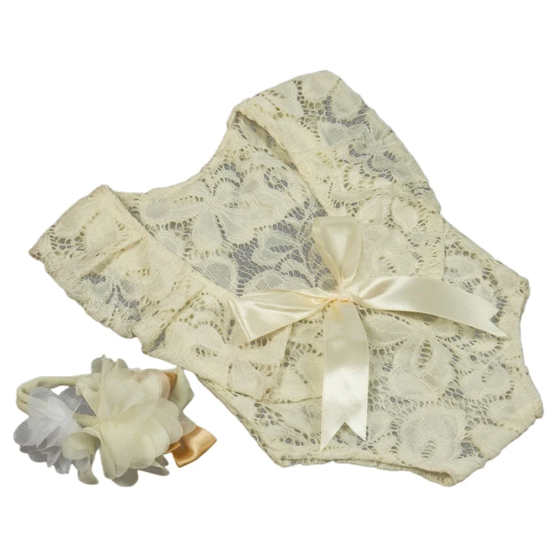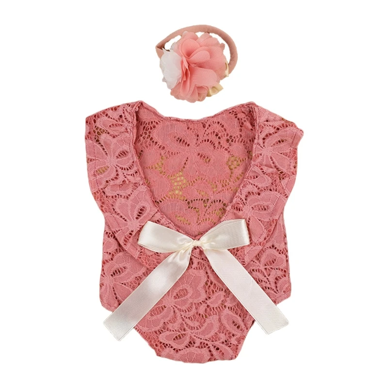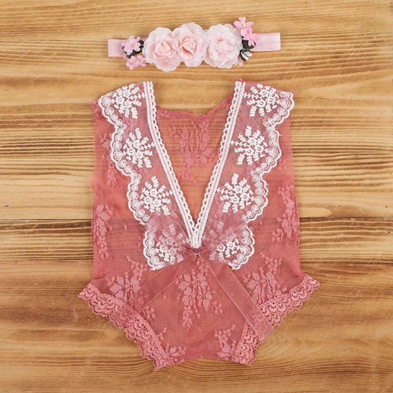 Комплект из 2 предметов для фотосъемки новорожденных, кружевной повязка на голову Ромпер, детская одежда для фотосъемки, головной убор, боди