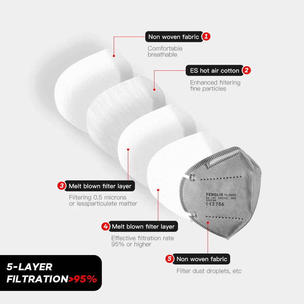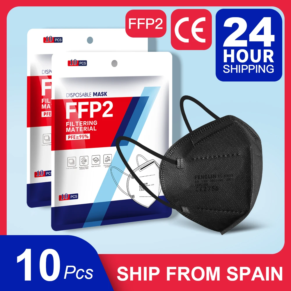 10-100 шт. черная маска FFP2 KN95 противовирусная маска для рта 5-слойная Защитная противопылевая маска Fpp2 для женщин и мужчин