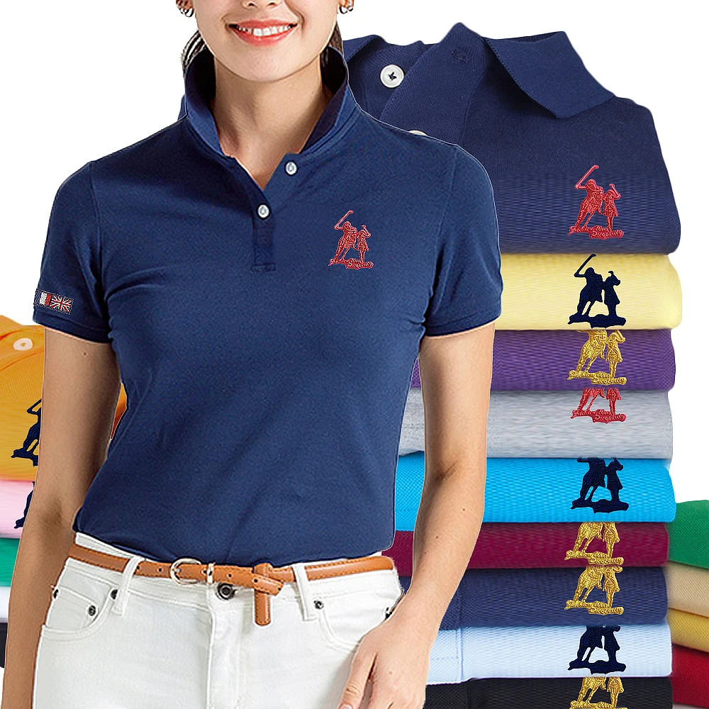 Рубашка-поло женская с коротким рукавом, брендовая Повседневная приталенная, 2021 хлопок, топ, лето 100%