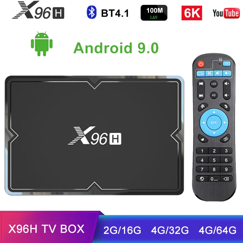 ТВ-Приставка Smart Home, Android 9,0, 6K HD X96H, Bluetooth 4,1, 2 + 4 Гб, DDR3, 163264 ГБ