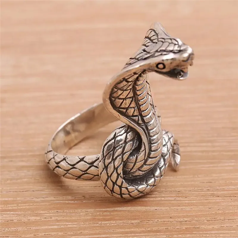 Преувеличенный в винтажном панковском стиле; Серебряные Цвет кобры обруч кольцо для мужчин и женщин в стиле ретро, панк-змея, животное, кольцо на палец для вечеринки ювелирные изделия