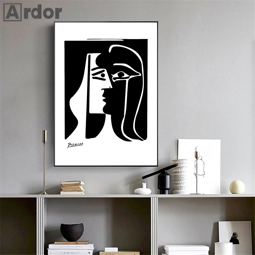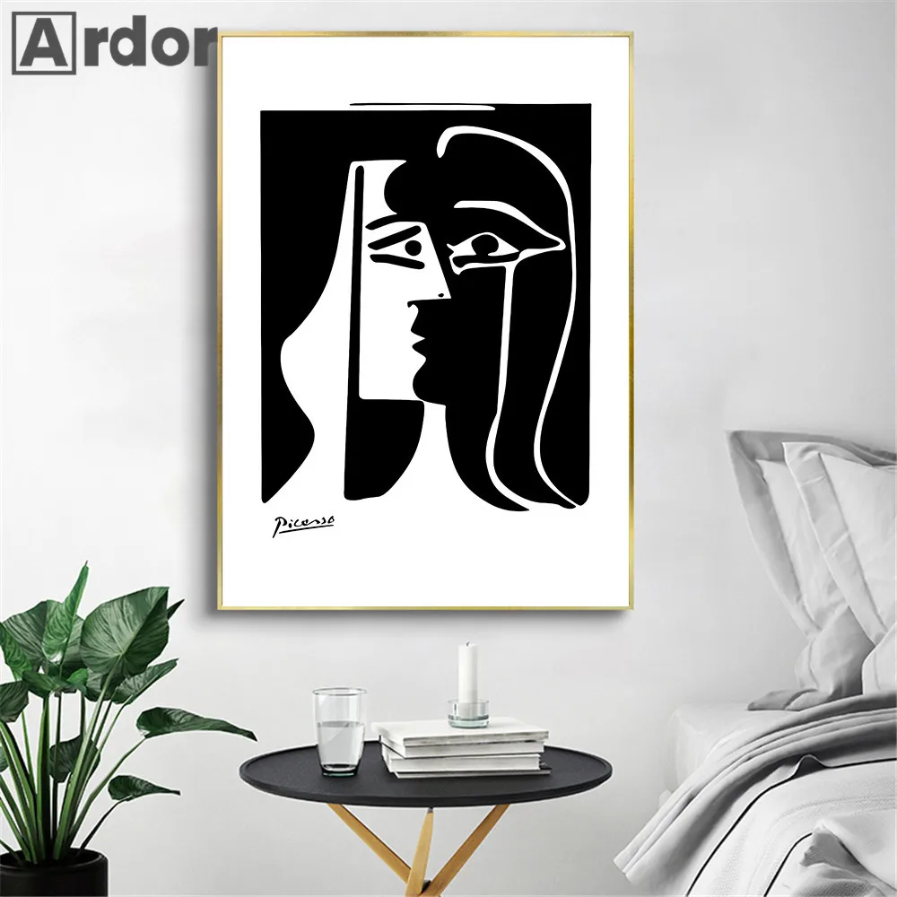 Постер с поцелуем Пабло Пикассо абстрактная женщина лицо печать на холсте Черно-Белая настенная живопись Модульная картина Декор для гостиной