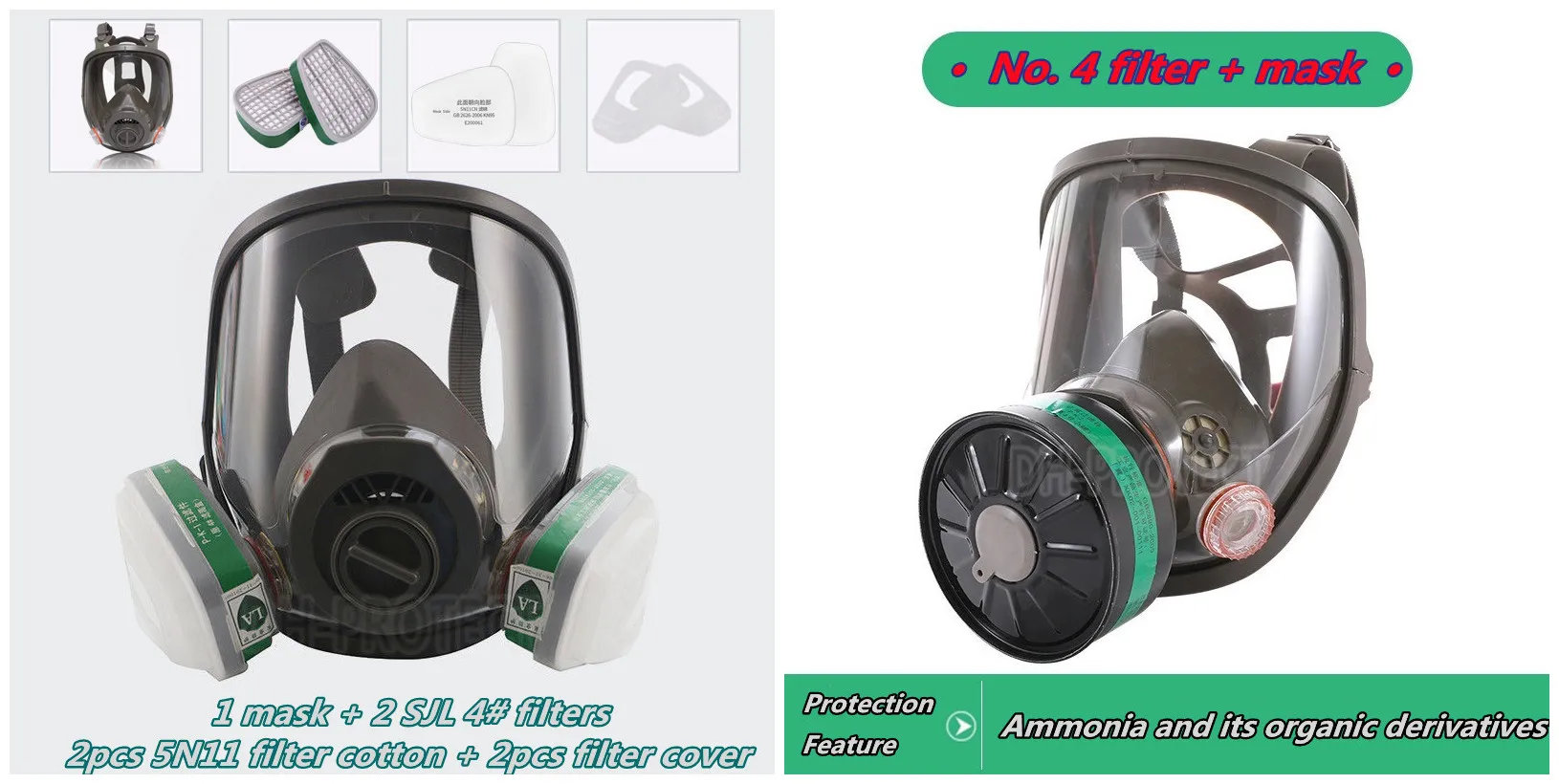Тип 3:1 маска + 2 SJL 4 # фильтры, 2 шт. 5N11 фильтр хлопок + 2 шт. крышка фильтраТип 6:1 маска + 1 шт. 4 # фильтр-бакФункция продукта: для аммиака, метиламина, производных аммиака.