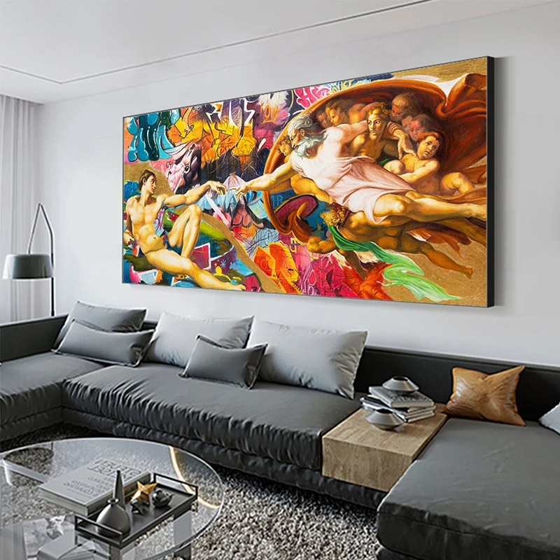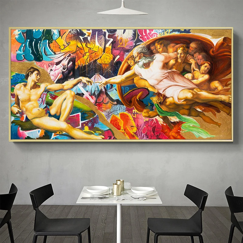 Абстрактный Бог, граффити, холст, плакаты и принты, классическая картина маслом, творение Адама, Настенная картина для украшения гостиной