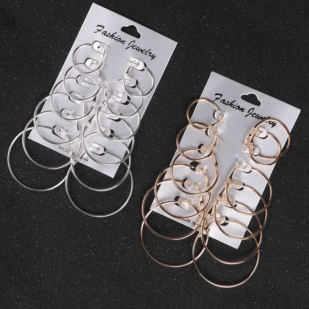Простые серьги-кольца в стиле панк, 12 пар6 пар1 пара, большие круглые серьги, ювелирные изделия для женщин, обручи, круглые большие серьги