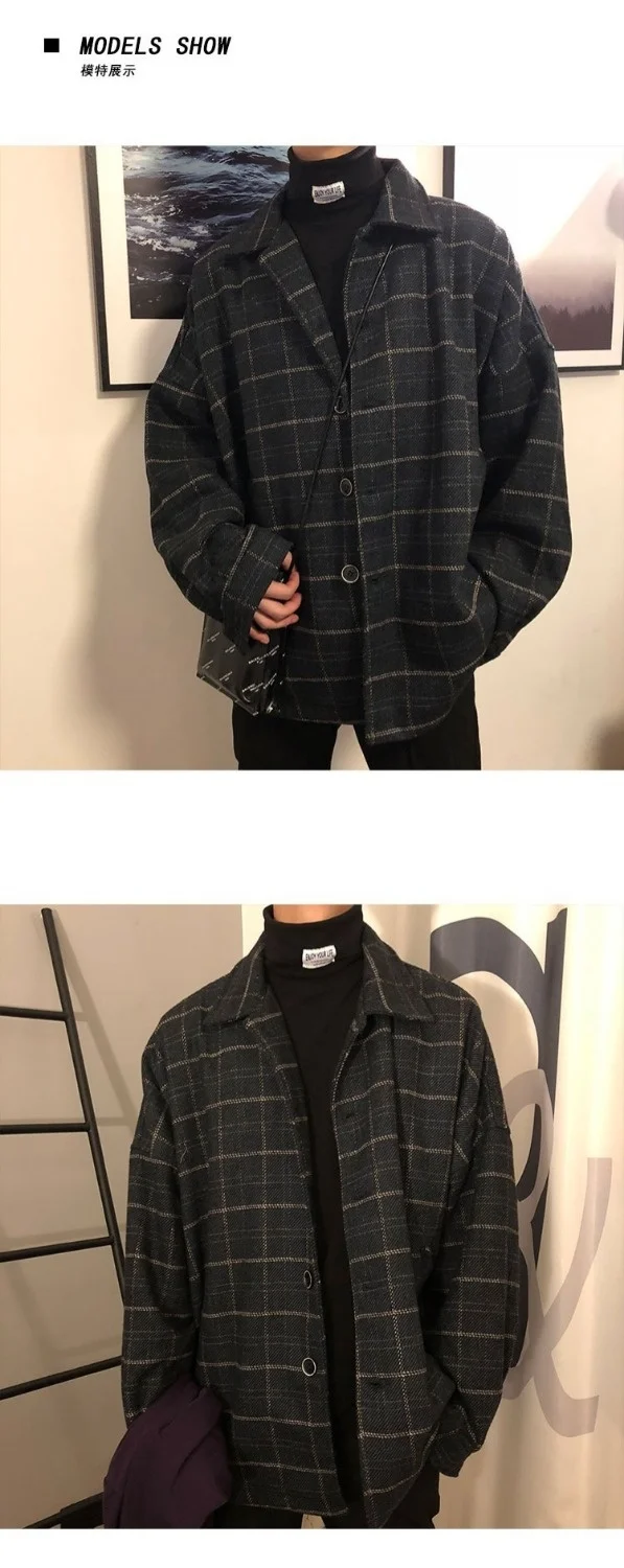 2021 клетчатая Толстая рубашка, уличная одежда, пальто, простая ретро куртка-гонщик в клетку, черная куртка для мальчиков, Японская уличная одежда, осень-зима, дикая