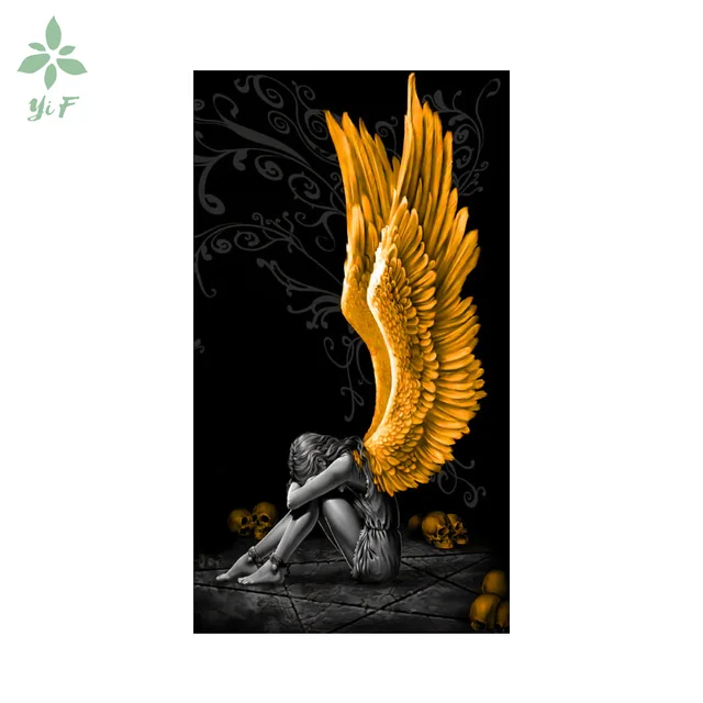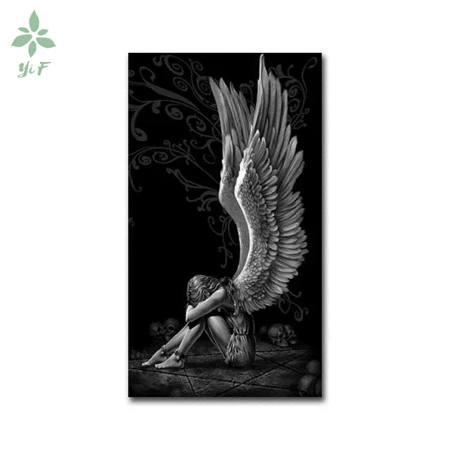 Холст Картина маслом дьявола и ангела живопись серый крылья художественной росписи используется для комнаты, офиса, украшение на стену