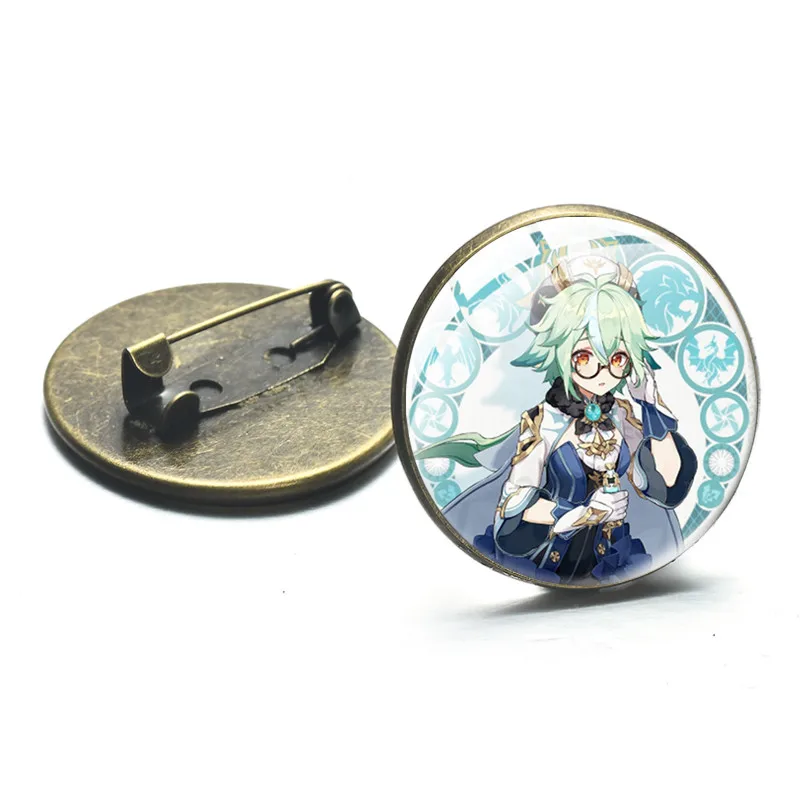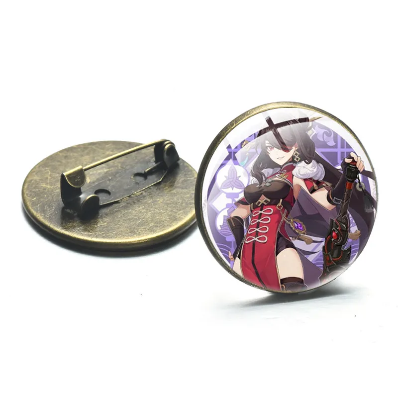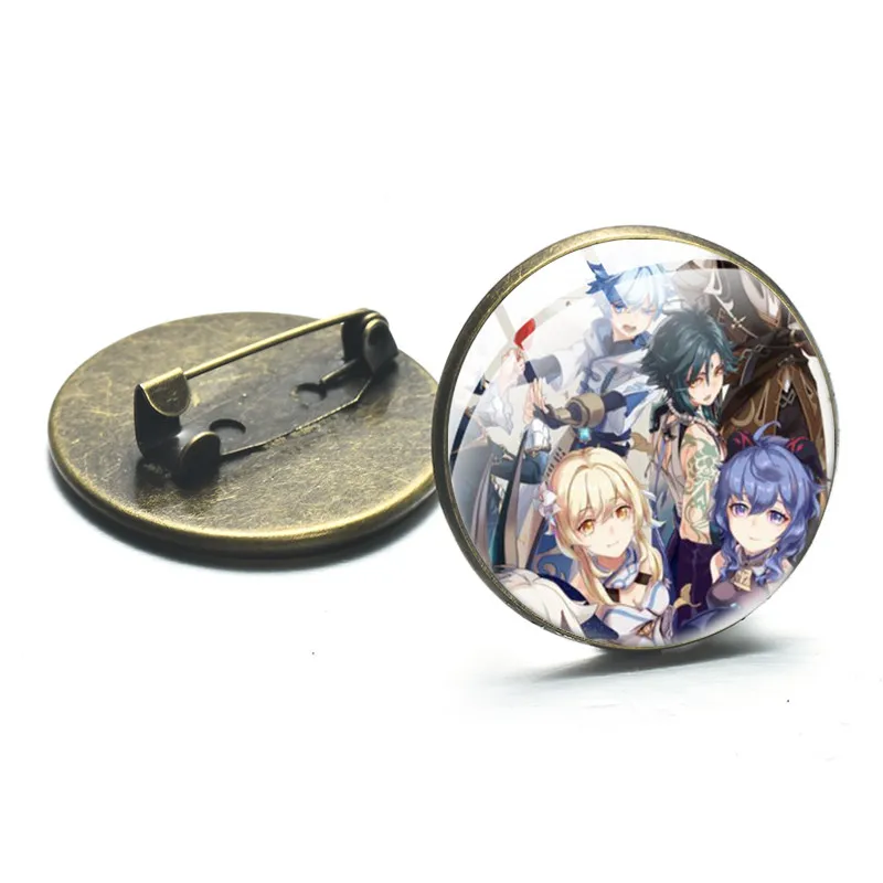 Японская мультяшная аниме Genshin Impact брошь значок значки аниме стекло кабошон Металлические Булавки Кнопка орнамент ювелирные изделия подарочные аксессуары