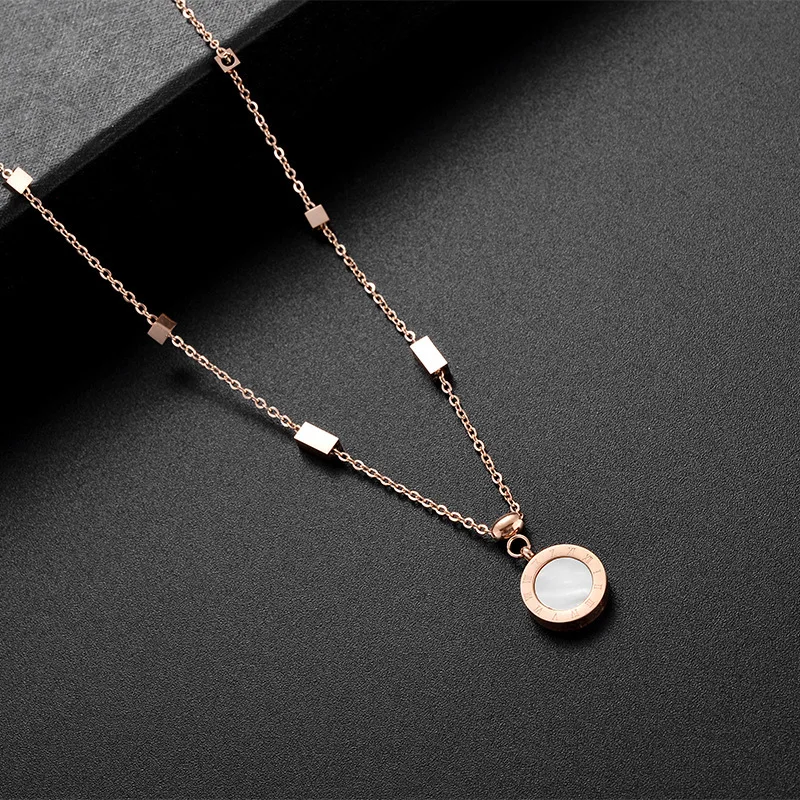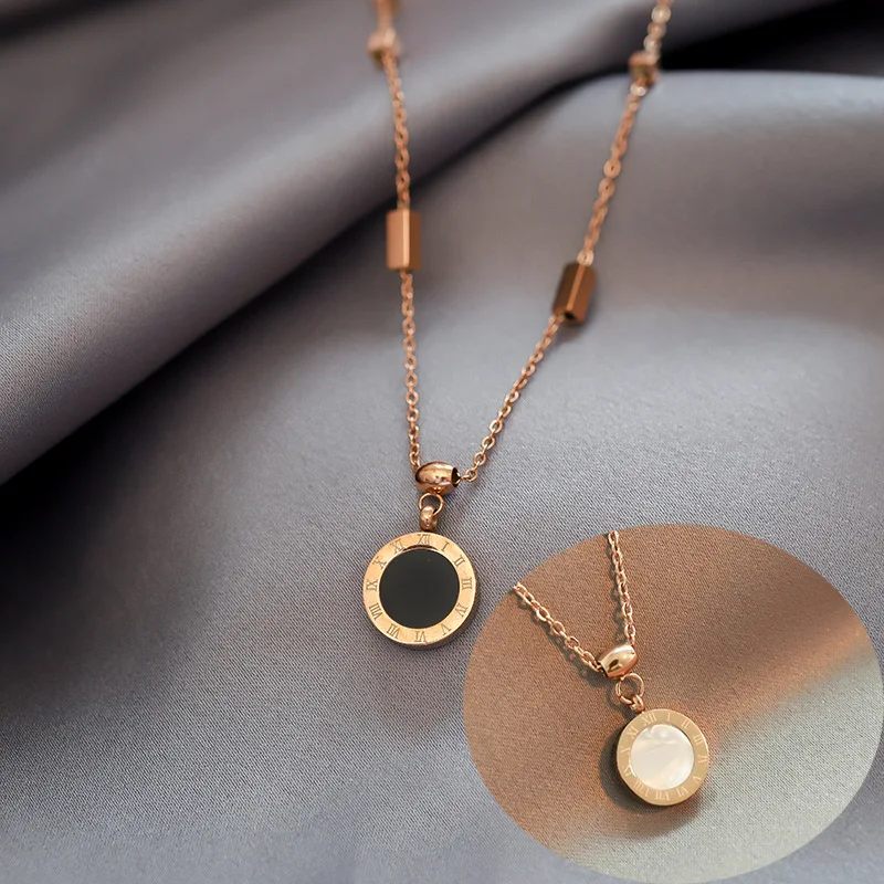 Ожерелье женское двухстороннее из нержавеющей стали с круглым кулоном и римскими цифрами