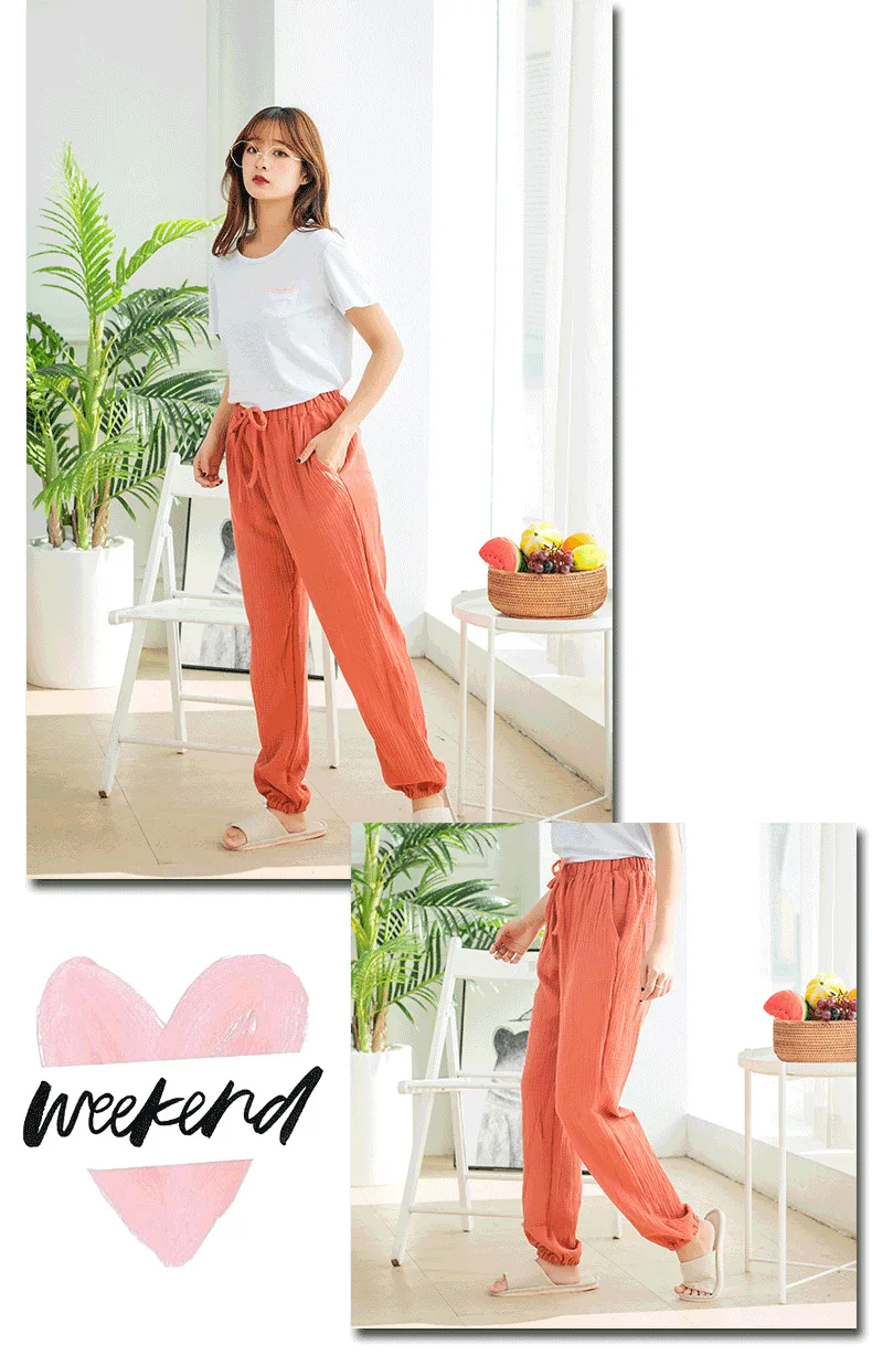 Брюки женские хлопковые в японском стиле, тонкие домашние штаны разных цветов для креповые брюки, размера плюс для сна, весна-лето