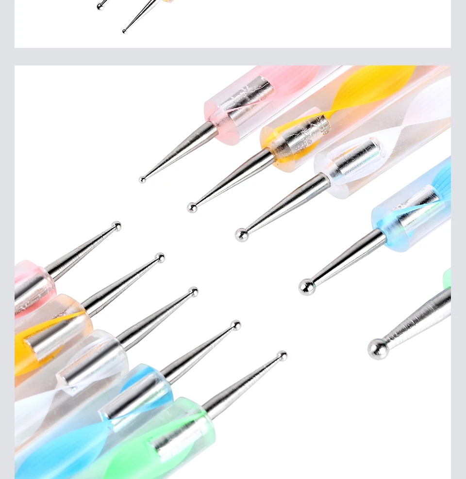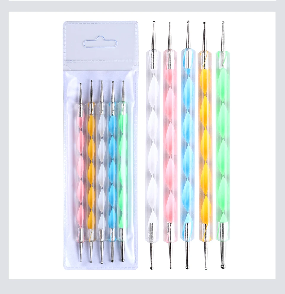5 штук в упаковке профессиональная 2 way Нажмите с силой так, ручка для ногтей ручка для нейл-арта набор для УФ Гель-лак для ногтей, рисовать кисть инструмент для нанесения страз