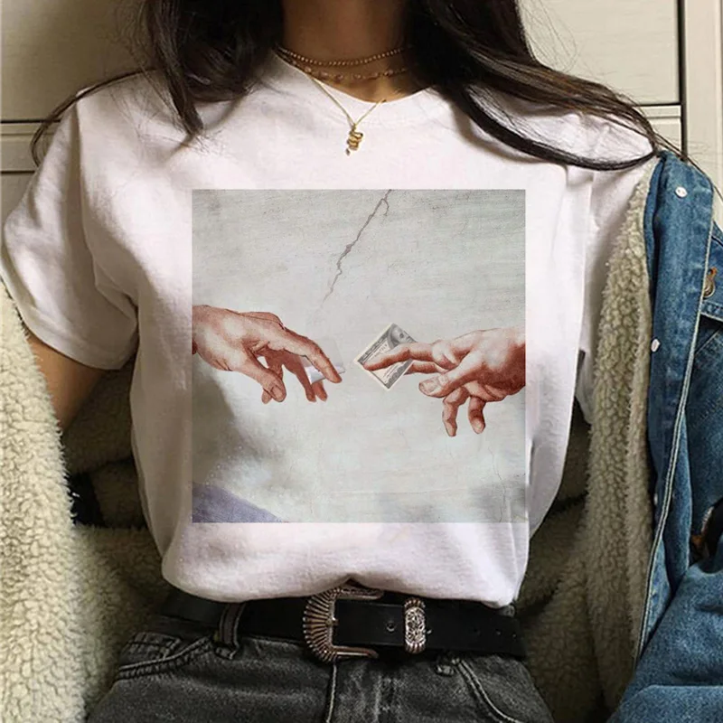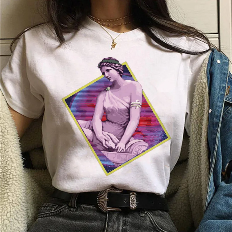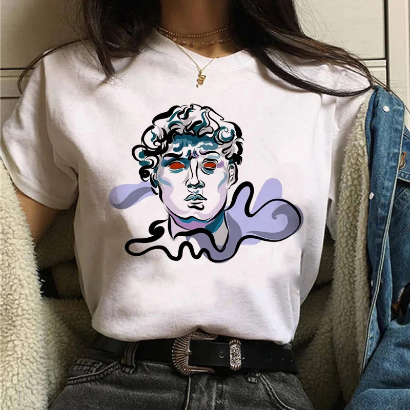 Винтажная женская футболка в стиле Харадзюку, с изображением Микеланджело, Vaporwave, 2021