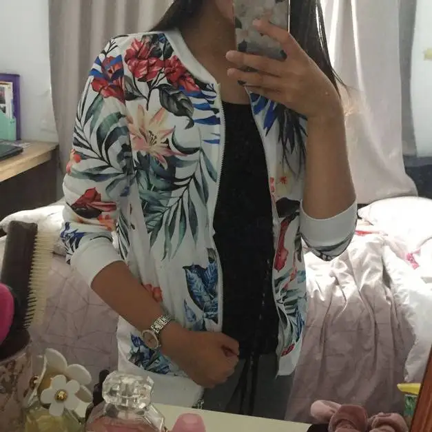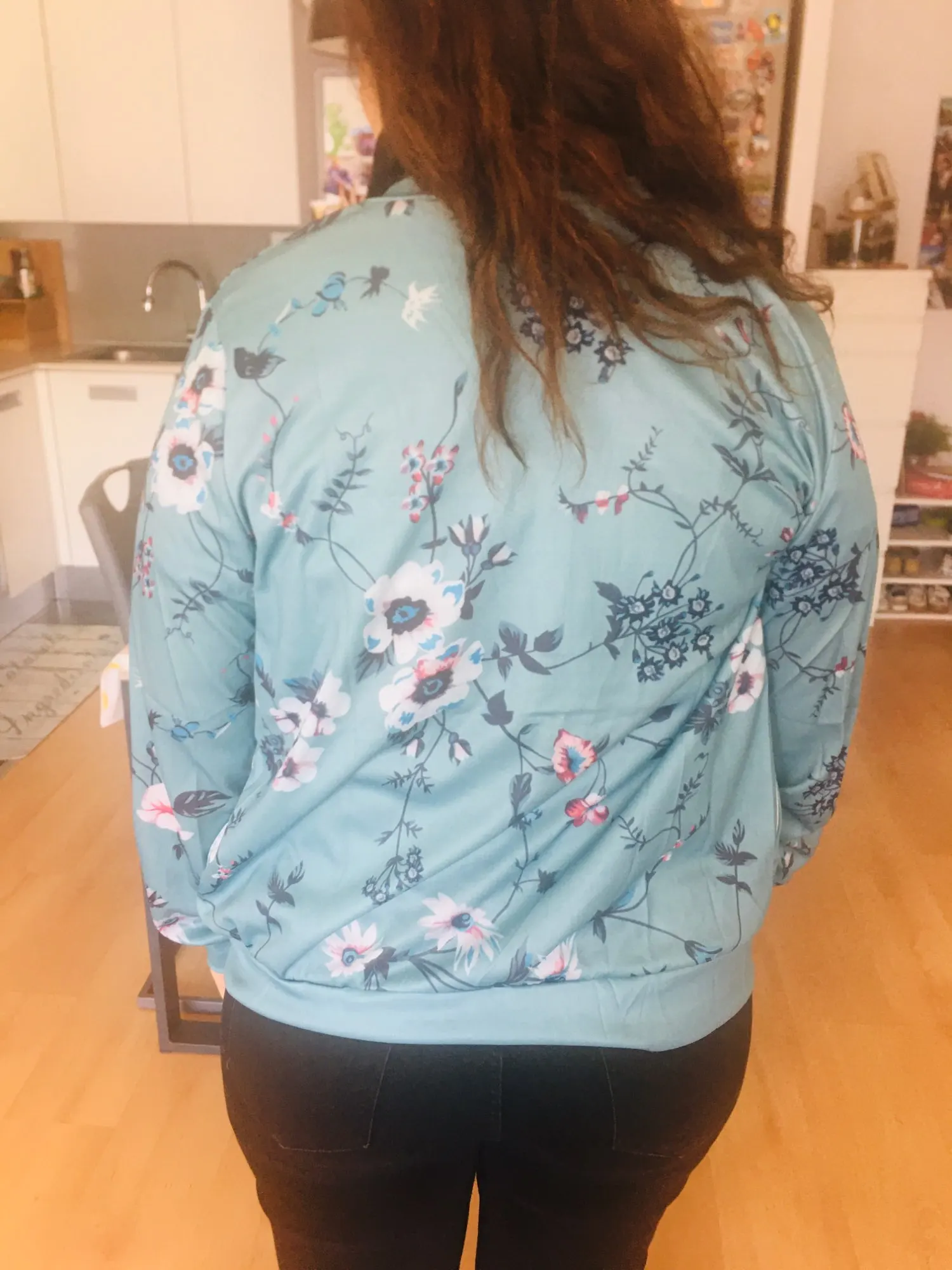 Куртка-бомбер Женская весенне-осенняя, легкая, с цветочным принтом и длинным рукавом, на молнии, 8XL, размера плюс