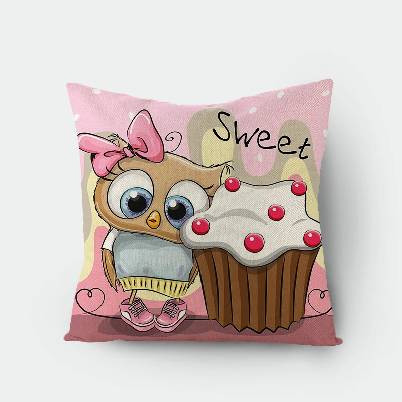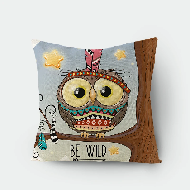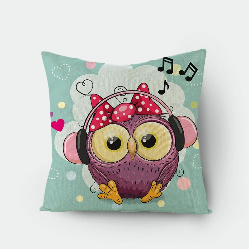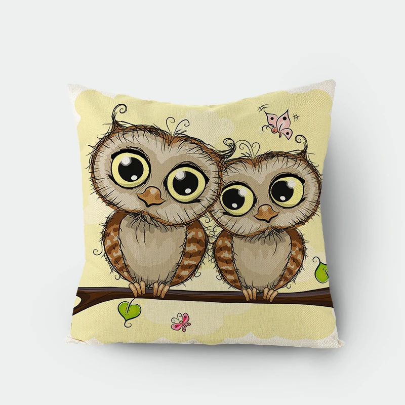 Льняной чехол для диванной подушки с милым рисунком совы, 45*45 см