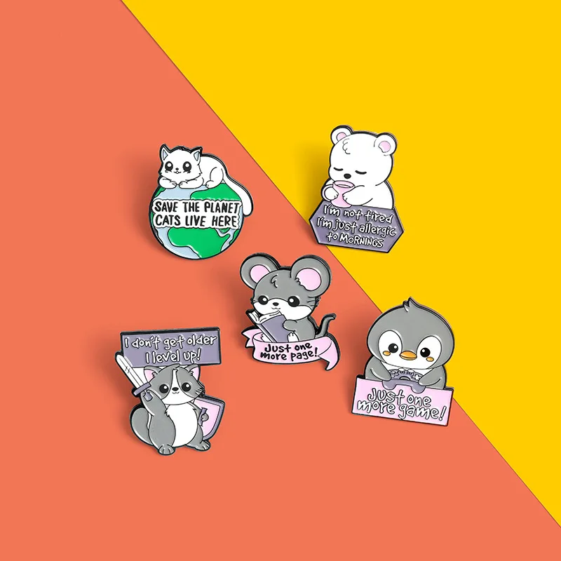 Животные цитаты эмалевые булавки на заказ кошка крыса Пингвин енот ...