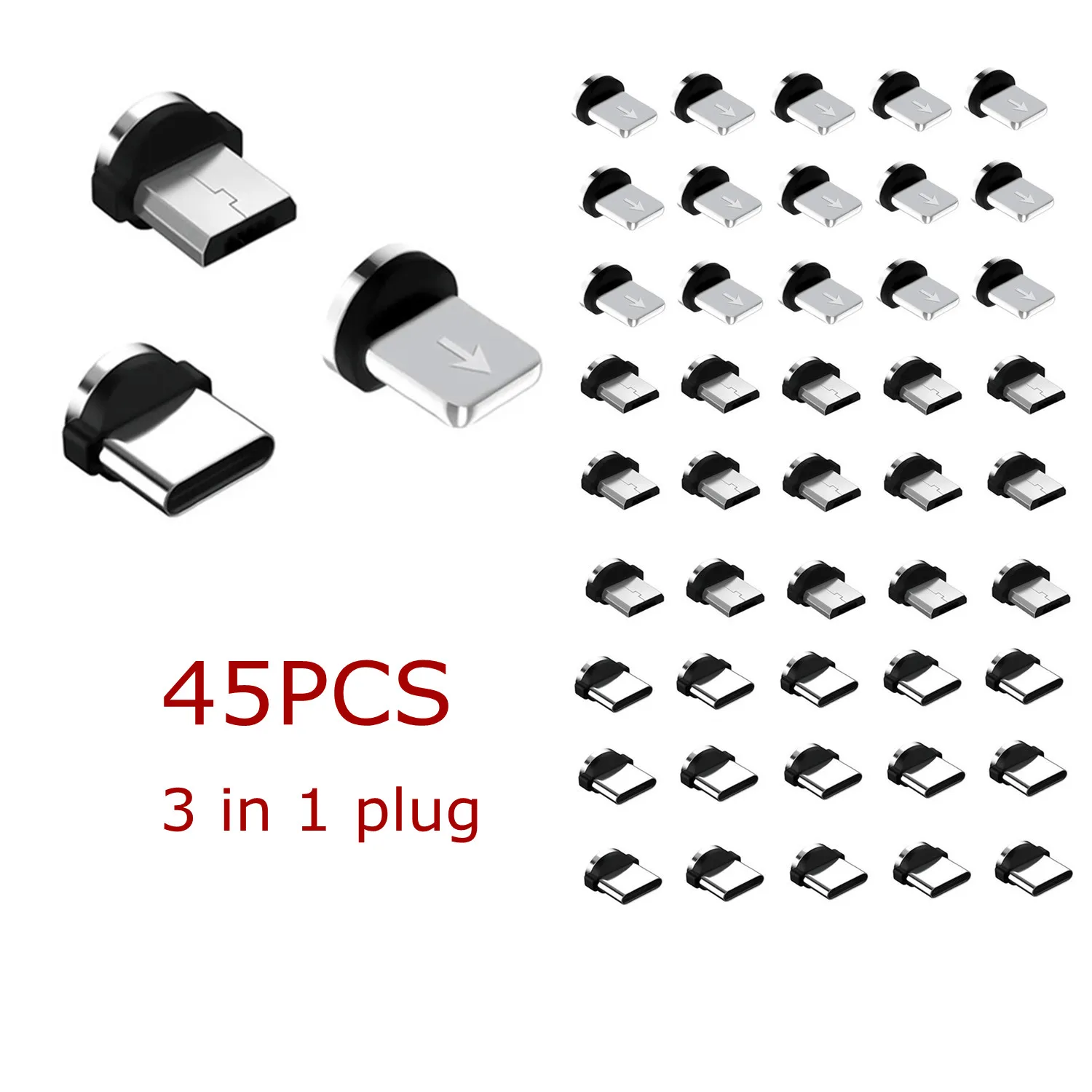 USLION 45 шт магнитные наконечники для iPhone Samsung мобильный телефон запасных частей 3 в 1 с разъемом конвертер кабель адаптер типа C
