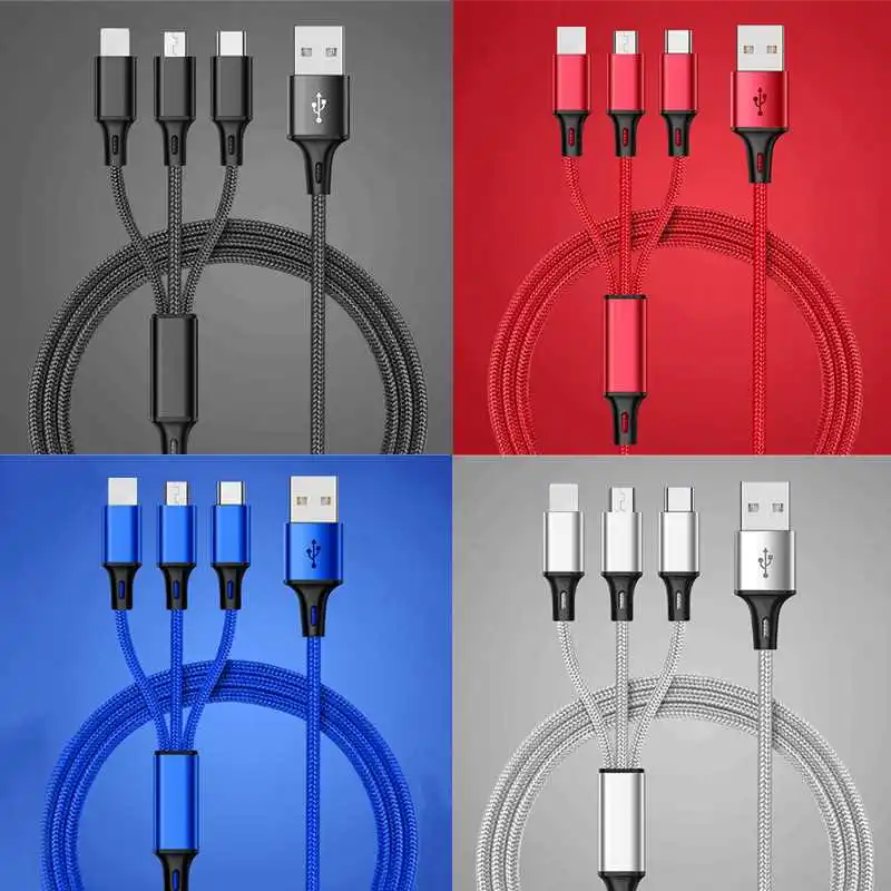 Кабель 3 в 1 usb-c, Micro USB, Lightning, для iPhone, Samsung, Huawei, Xiaomi