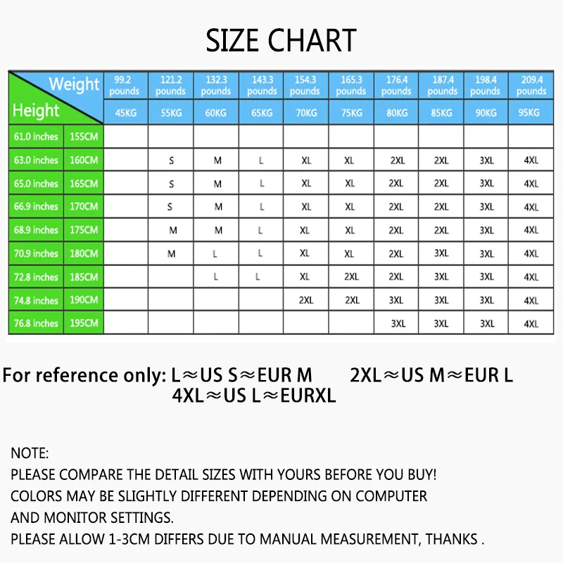 S M L XL 2XL 3XL 4XL(Asian size)
