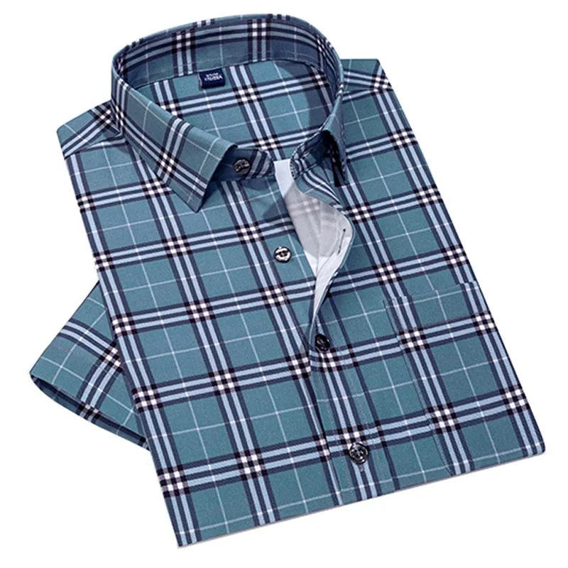 Рубашка AOLIWEN мужская с коротким рукавом, модная блуза в клетку, ...