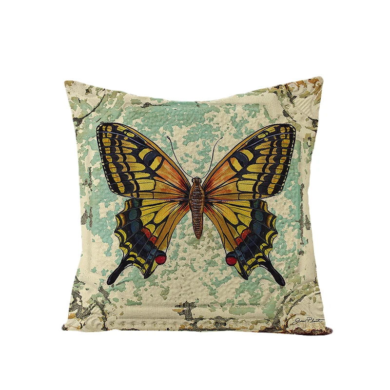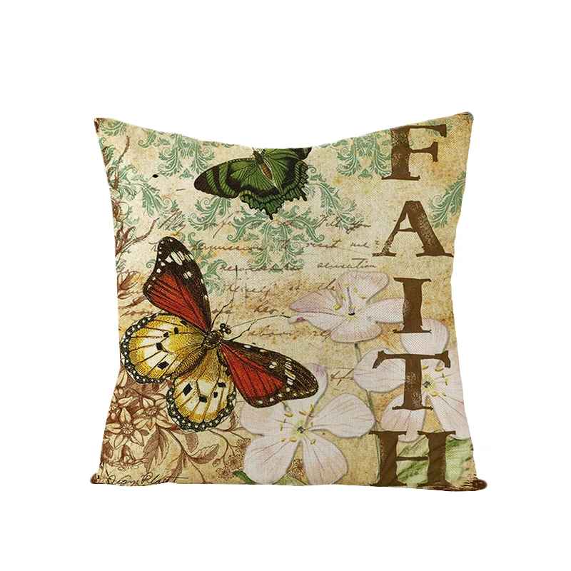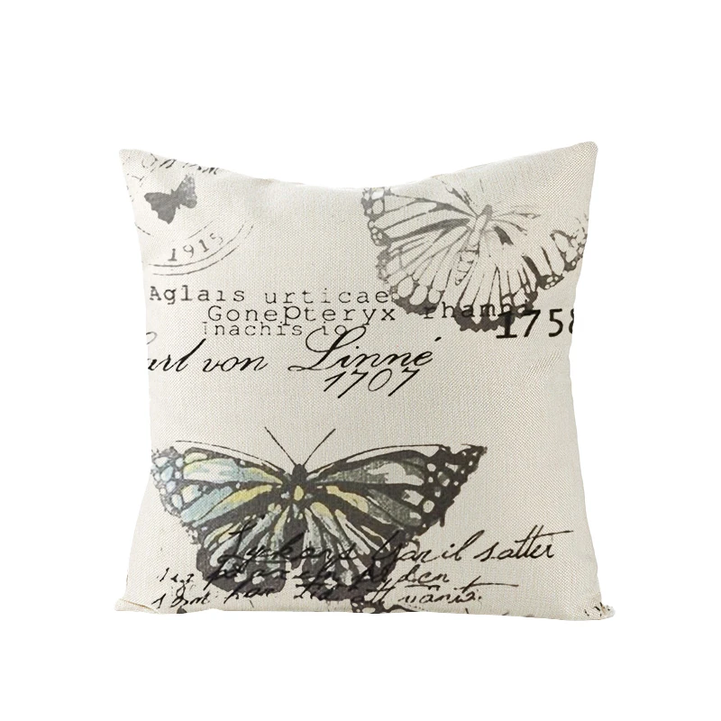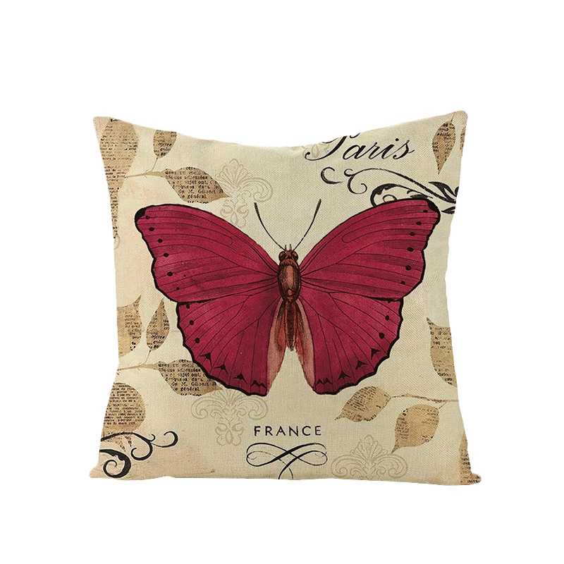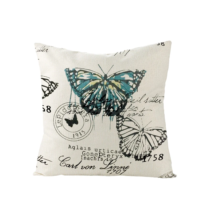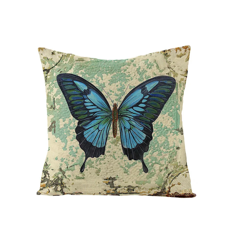Винтажный чехол для диванной подушки с красочными бабочками, декоративный льняной чехол для гостиной с животными, 45x45 см