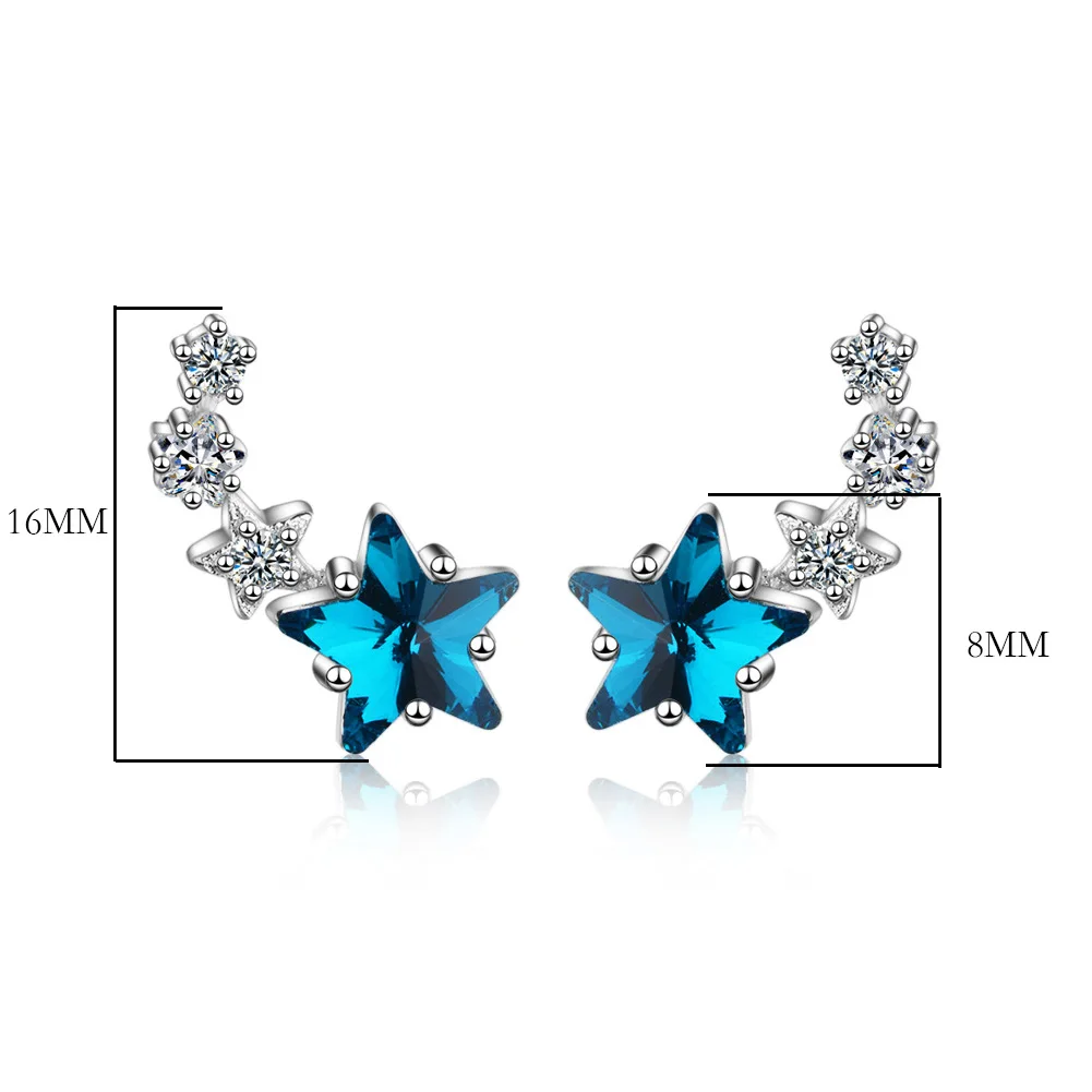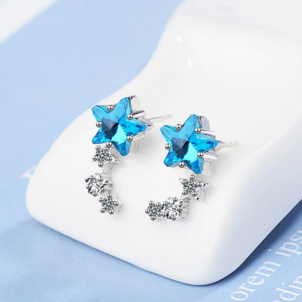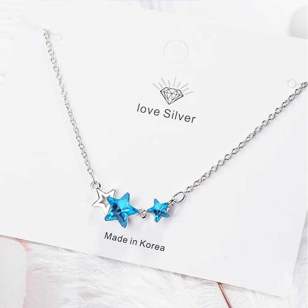 Ювелирное изделие для женщин, аксессуары 925 стерлингового серебра Набор голубого цвета со звездами, серьги-гвоздики с кристаллами Свадебные жемчужные ожерелья модные вечерние подарки для девочек