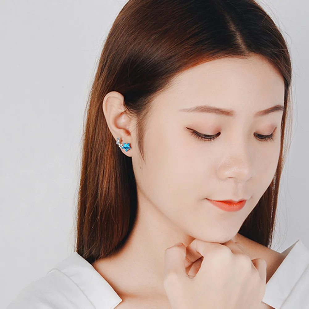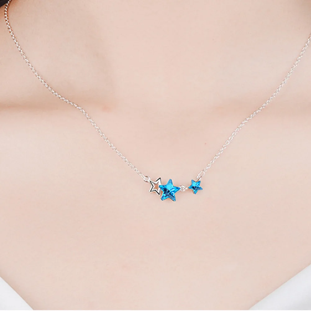 Ювелирные изделия для женщин, аксессуары, набор из стерлингового серебра 925 пробы, серьги-гвоздики с голубыми звездами и кристаллами, свадебные ожерелья, модные вечерние подарки для девочек