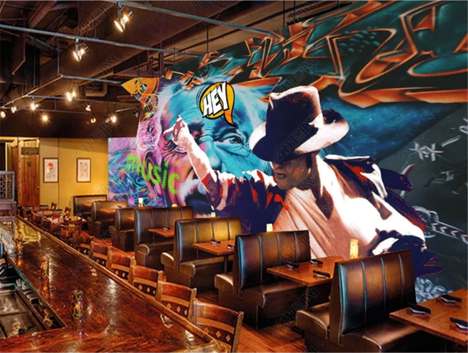 Европейские и американские фрески обои Джексон граффити бар фон обои промышленное украшение papel de parede