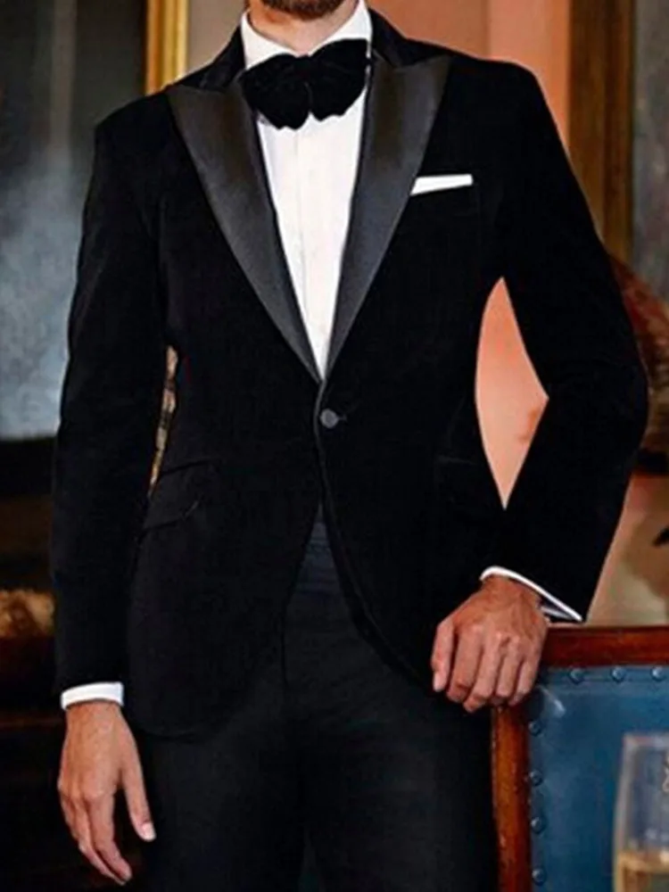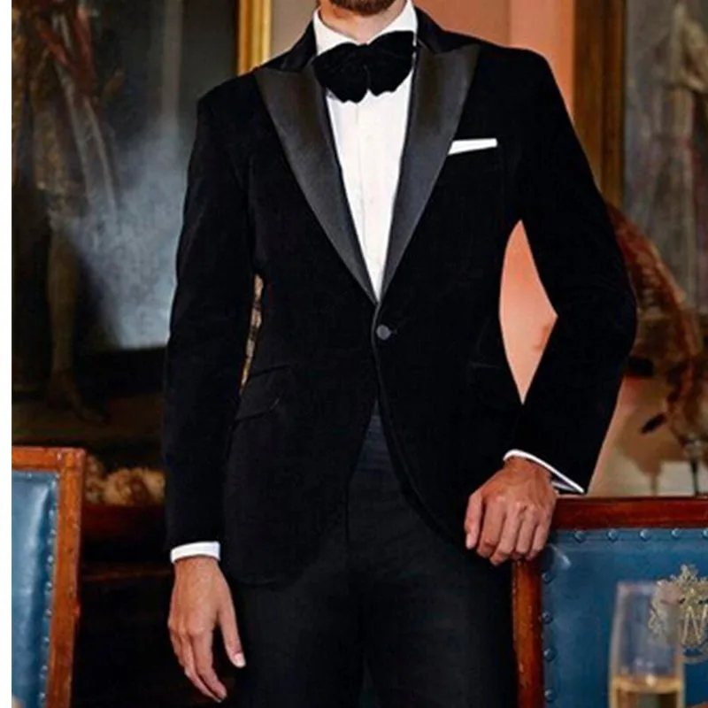 Мужской смокинг жениха на пике с отворотом, Свадебный костюм, Бархатный смокинг, пиджак, мужской костюм (пиджак + штаны + бант)
