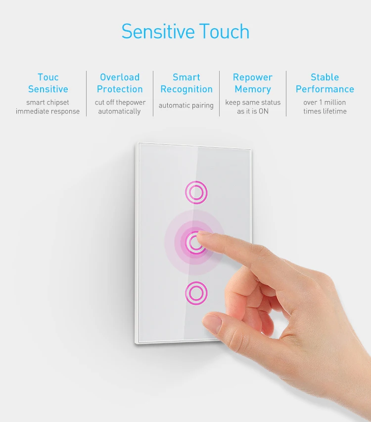 Светильник-это интеллектуальное устройство, которое может управляться дистанционно через сеть z wave с определенной частотой. В сетевой связи z wave штепсельная Вилка питания может быть подключена к любому шлюзу z wave. В разных странах или регионах. Частота Радио отличается. В общении с шлюзом z wave. Каждый Светильник имеет уникальный ID-код. Когда мы добавляем или удаляем swith из хоста сигнализации. Просто поместите светильник в диапазон z wave network шлюза. Затем мы можем легко найти переключатель через идентификационный код устройства. В общении с шлюзом. Светильник не только может переключаться Отправьте сигнал на шлюз z wave. Но также cna получает сигналы от него. При нажатии на кнопку на светильник. Он будет отправлять сигналы на шлюз z wave. Затем Шлюз может правильно отображать состояние включения/выключения. Когда светильник swich получает сигналы от шлюза. Переключатель sate будет удален Вкл/Выкл Особенности: Совместим с 300 сериями и 500 сериями Диапазон: до 50 м снаружи, 30 м внутри Режим работы: сенсорный Выход переключателя: выходные устройства могут подключаться к двум дорогам, 16 большая поддержка Мощность Параметры: 110-230 В переменного тока +/-10% В переменного тока, 50/60 Гц Управление температура: 0-40 ℃ Температура хранения: -20-60 ℃ Максимальный ток: 100 мА Мощность Потребляемая мощность: 1,2 W AC Мощность Размер продукта (Д * Ш * В):86x86x34,2 мм Радиочастота: Версия США: только 908,4 МГц