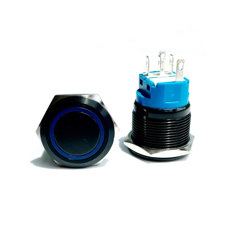 Черный кнопочный переключатель 12161922 мм, Водонепроницаемый светодиодный светильник, металлические плоские мгновенные переключатели с маркировкой питания 5 в 12 В 24 В