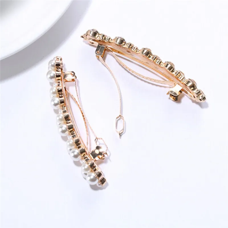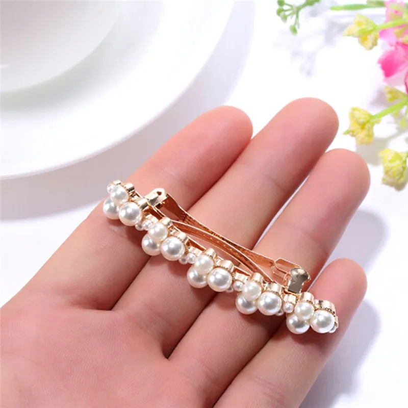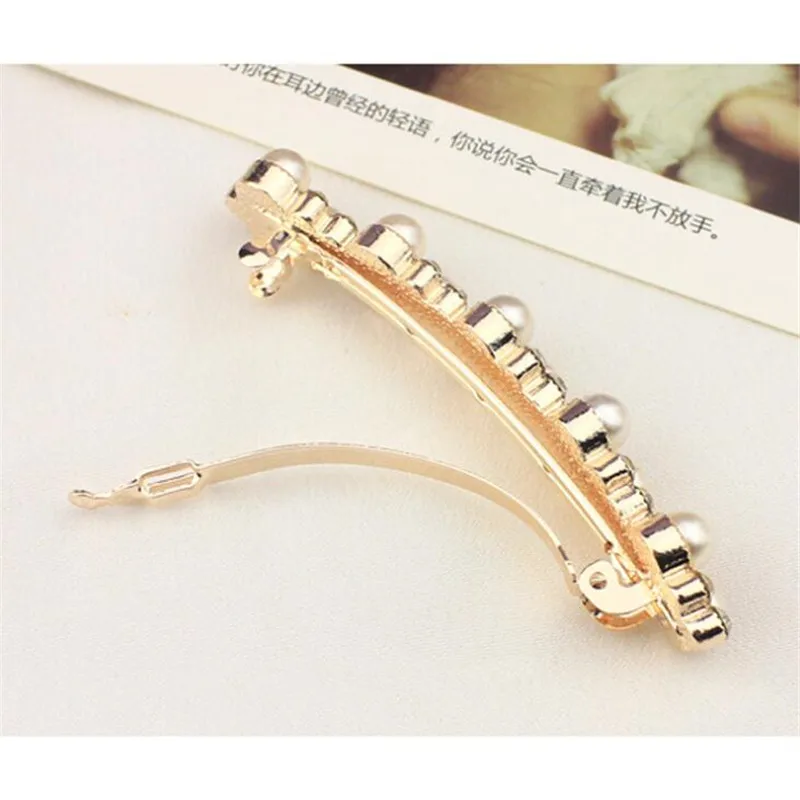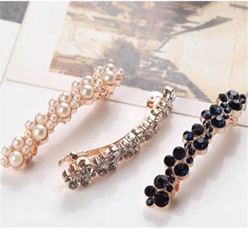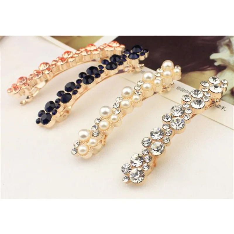 Заколка для волос женская, с кристаллами и жемчугом, в Корейском стиле